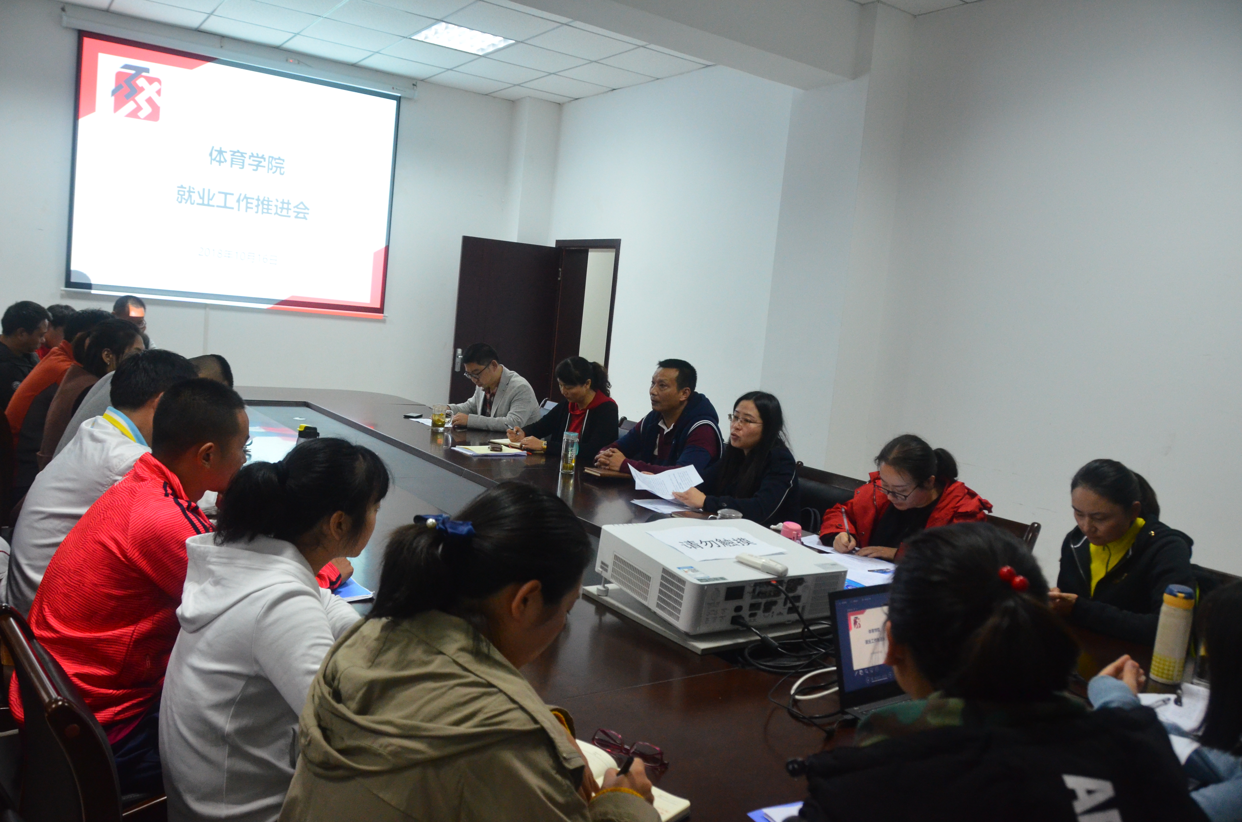 10月16日,万象城awc888举行就业工作推进会。院长王建强、院党委书记杨英、院党委副书记蒋颖、副院长刘骞、全体就业工作小组成员和2016级班主任参与本次会议。