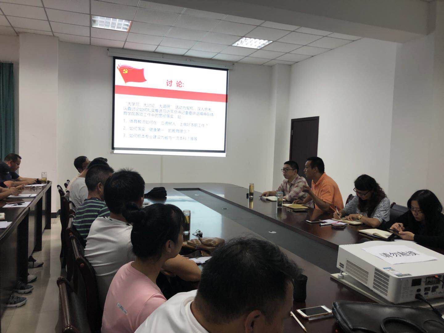 首先,杨英带领大家学习了“习近平在全国教育大会上的重要讲话”。她指出,教师是人类灵魂的工程师,是人类文明的传承者,教师在享受应有的社会声望的同时应该做到九个“坚持”,坚持党对教育事业的全面领导、把立德树人作为根本任务。其次,我们是社会主义国家,必须把培养社会主义建设者和接班人作为根本任务。我们要从坚定理想信念、厚植爱国情怀、要增长知识见识、培养奋斗精神、增强综合素质这五个方面下功夫。第三,万象城awc888的教师更要带头树立“健康第一”的教育理念,开齐开足体育课,帮助学生增强体质、健全人格、锤炼意志。最后,杨书记重申了立德树人的宗旨,立德树人是教育的总目标,人民教师要坚决克服唯分数、唯升学、唯文凭、唯论文、唯帽子论的顽瘴痼疾,严格要求自己,处理好师生关系,热爱教育、教书育人,珍惜教师光荣的光环。杨英在结尾提出三个问题让大家深入思考,认真讨论:第一、体育教师如何在“立德树人”上做好本职工作?第二、如何落实“健康第一”的教育理念?第三、如何把本专业建设成为省内一流本科?