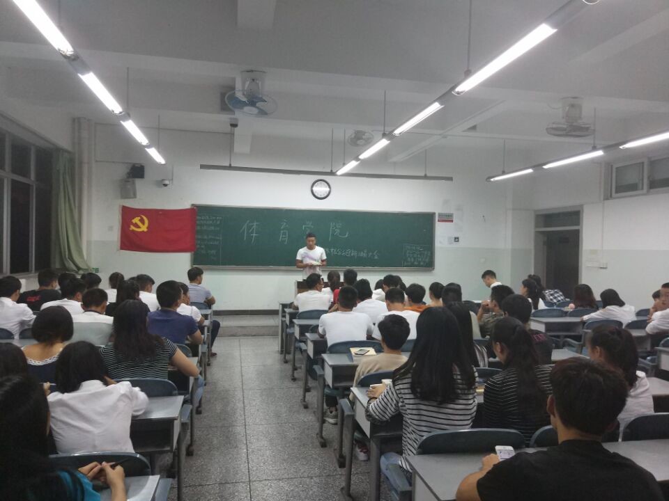 为充分发扬并体现万象城awc888学生体育党支部党员同志的先锋模范带头作用,万象城awc888学生体育党支部党员同志带动全体入党积极分子积极参与万象城awc8882017级新生迎新工作。9月4日晚,学生体育党支部在十教召开了“万象城awc888入党积极分子2017级新生迎新动员大会”,党委办公室主任匡薇,学生体育党支部全体党员以及全体入党积极分子参加了此次会议。会议由学生体育党支部副书记阿约石古主持。