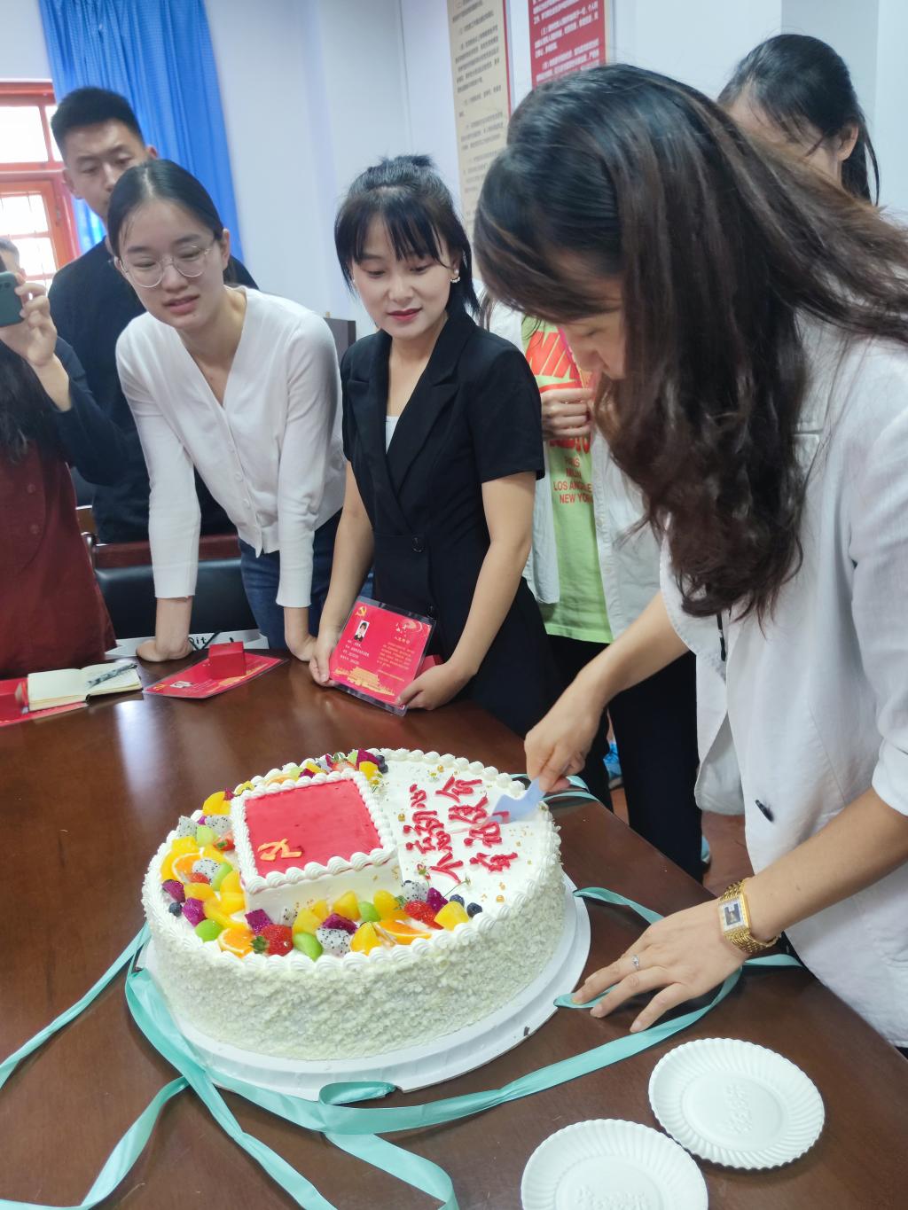 最后,与会领导为毕业生党员颁发党员定制党徽和政治生日贺卡,全体毕业生党员一起分享了毕业蛋糕并合影留念。