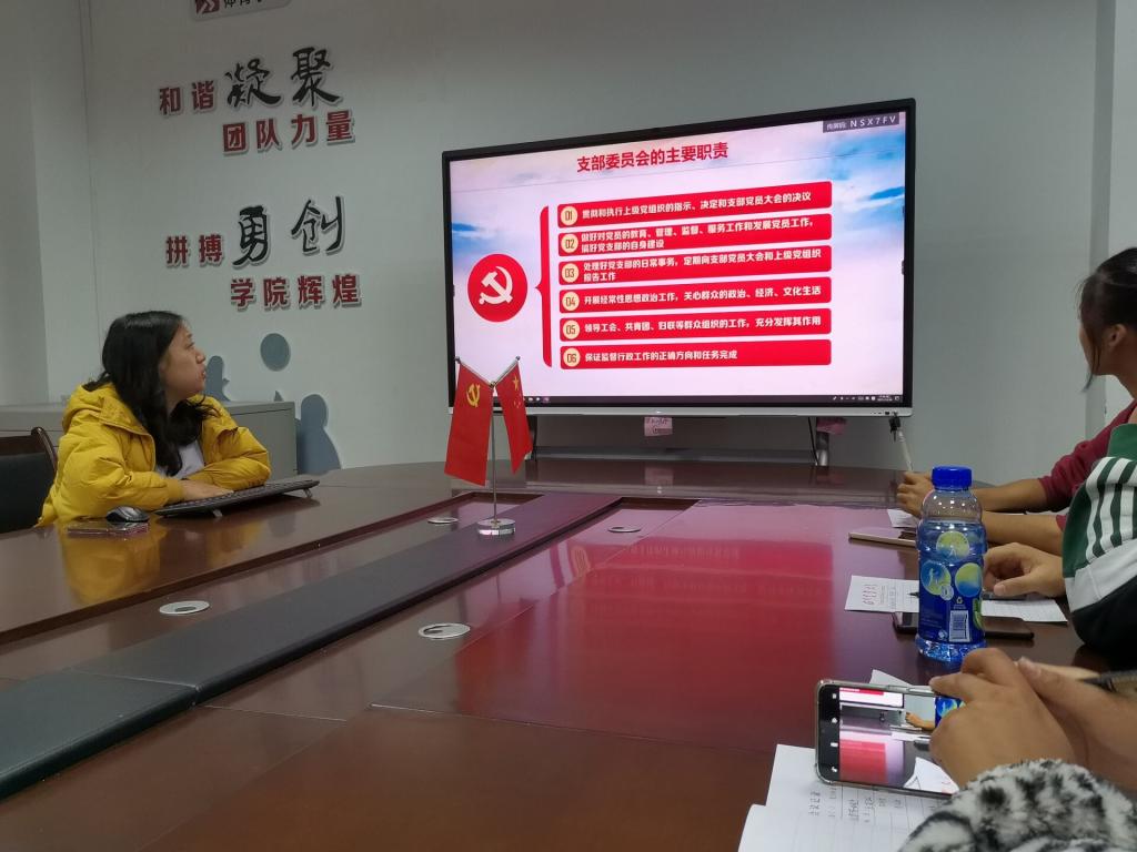 10月26日下午,学院专职组织员、学院团委副书记兼党委办副主任丁琳在五办202会议室为全体学生支部委员做了党务工作专题培训。丁琳围绕党支部年度工作计划和阶段工作安排、党员管理、发展党员、对党员的奖惩等事项展开培训,并提出开展支部特色活动的新要求以及组织生活会的新思路。本次培训会让支部委员们更加明确了学生党支部的工作要求以及各自的岗位职责,也深刻意识到了肩负的责任与使命。