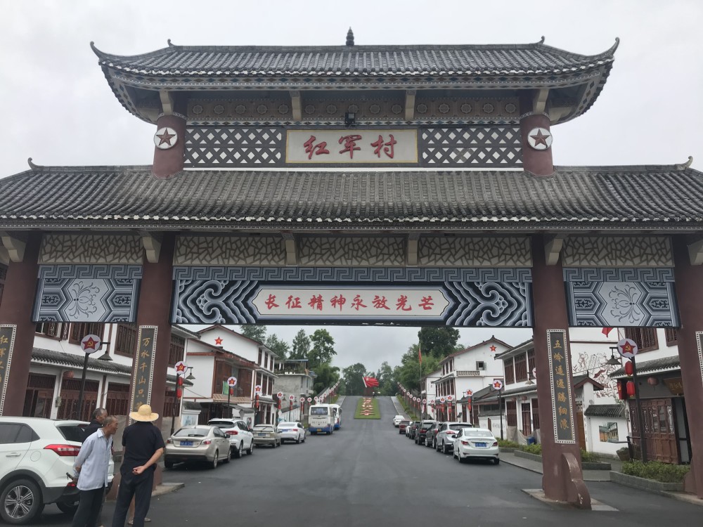 图2为红军村正门,上面写着长征精神永放光芒。褚洁雨 摄