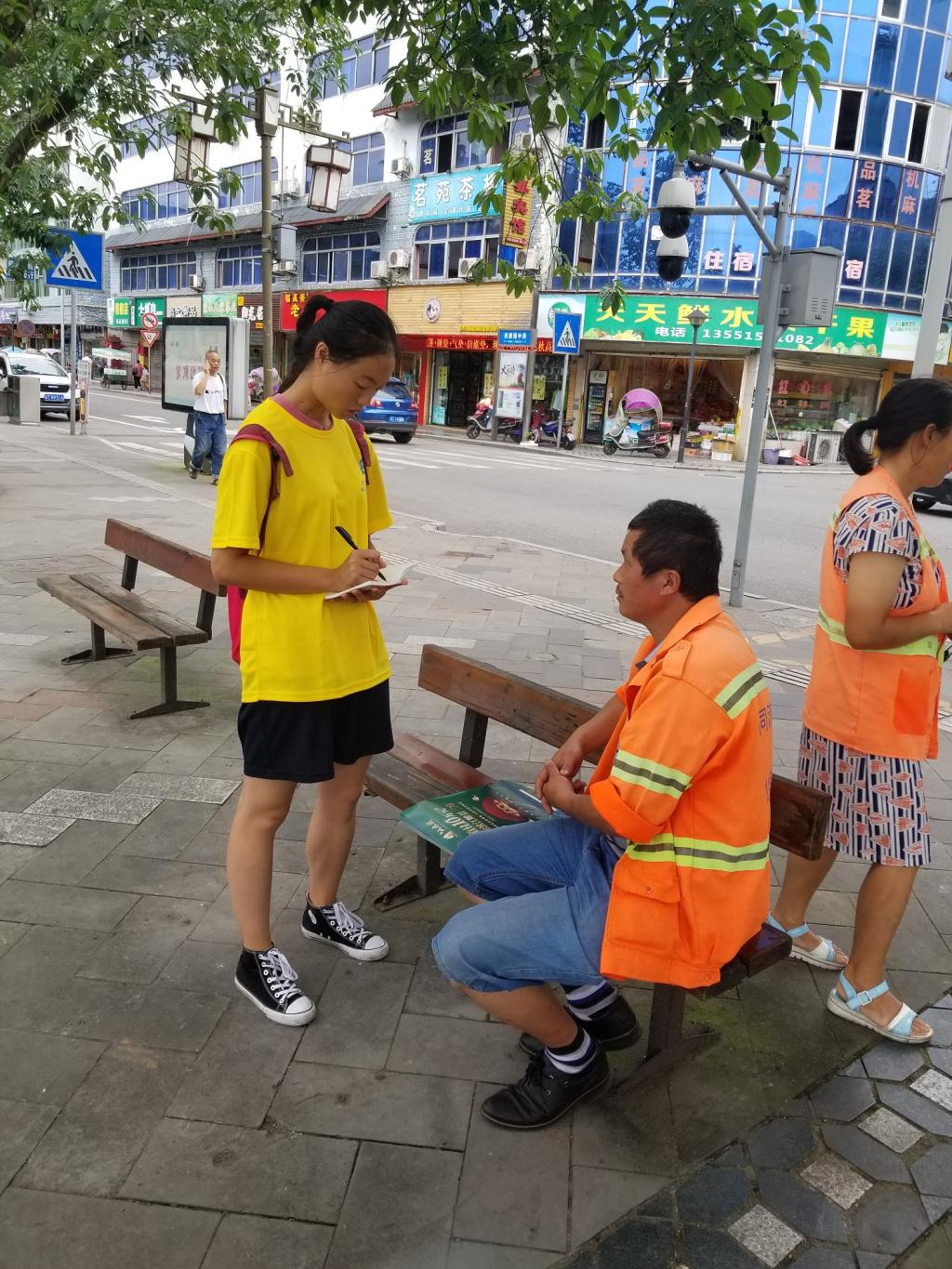 图二实践队成员正在访问当地环卫工人对创新创业的了解程度。中国青年网通讯员崔陈沛舟摄