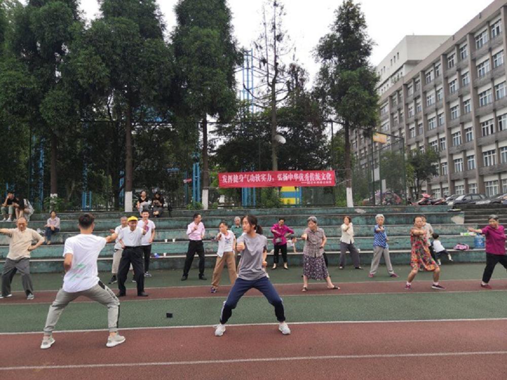 在我们教学时,途径的人们看到后也不间断的加入,虽然教学时间不长,但每次结束时总会有很多新的面孔,但他们无不是满脸笑容。这正是对我们社会实践的一种肯定,也是让我们将它做大做好的动力。在弘扬中国传统文化的同时,让老人们增强体质、养成良好的健身保健习惯,让全民健身的号召深入人心。