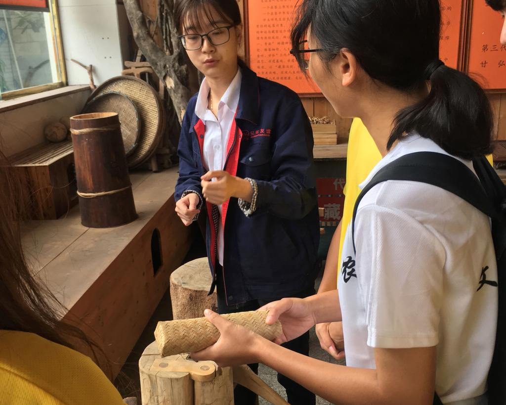 “由也升堂矣,未入于室也”团队在工作人员的带领下来到藏茶文化长廊。映入眼帘的是一排排写在竹编上的论语。据工作人员介绍这些竹编里面都装满了藏茶,上面的论语都是由甘玉祥董事长亲笔题上去的。被团队成员吸引的还是长廊上各种社会各界人士来公司拜访交流的照片让团队成员不禁感叹,藏茶正走上国际化被越来越多的人认识和了解。团队成员在甘玉祥董事长的同意下参观了甘玉祥董事长的工作室。工作室展示了藏茶的简单制作工序和藏茶的三代的演变历程。最后为了更好了解藏茶,团队与甘玉祥董事长进行了深切的交谈。