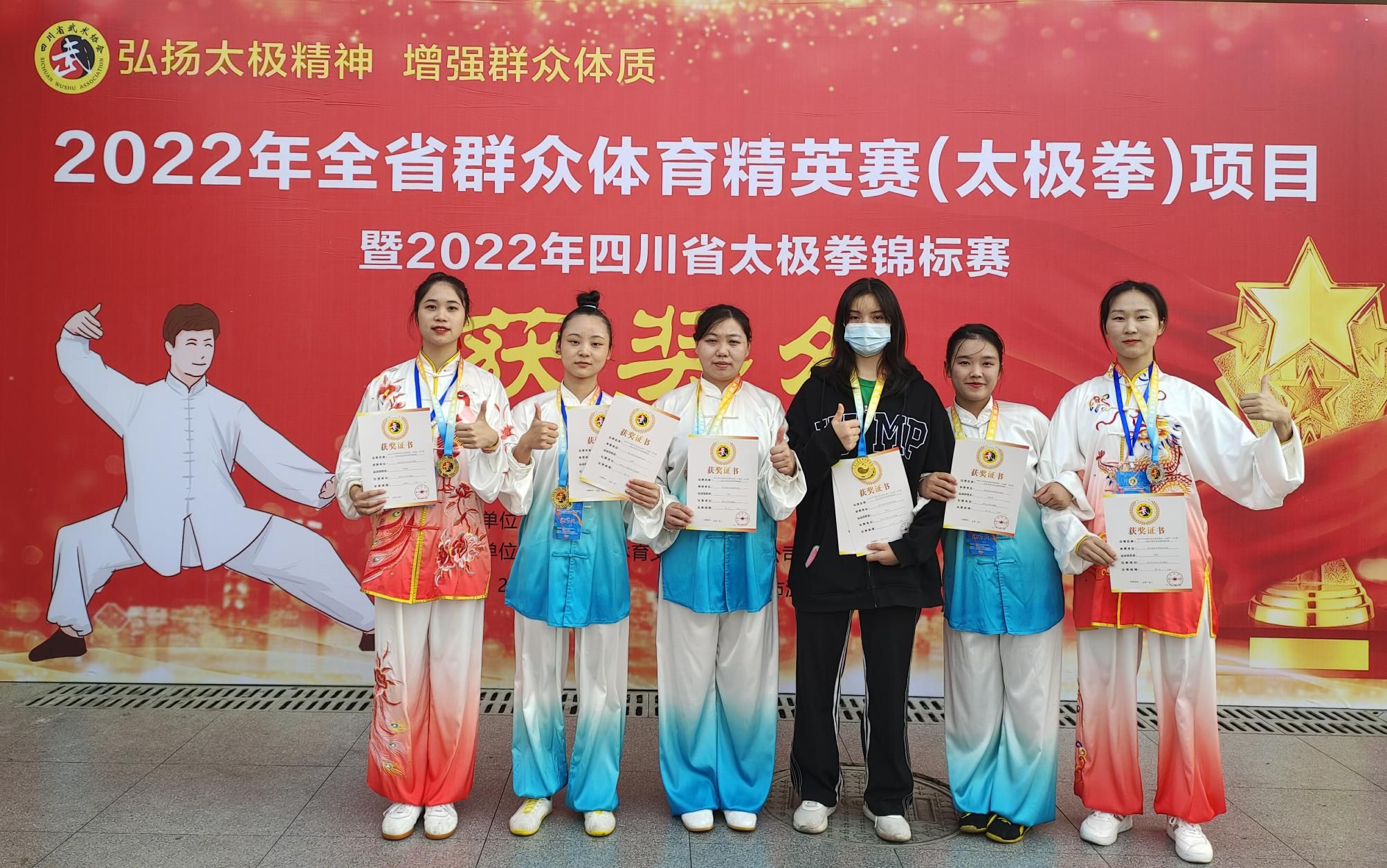 四川省太极锦标赛由四川省运动管理中心主办,四川武友文化发展公司承办,在温江市体育馆举办。万象城武术分队和来自全川的各武术协会、武术会馆、研究会等47支队伍的500余人一较高下,最终在太极扇、32式太极剑、24式太极拳等项目拿获6枚金牌,3枚银牌,1枚铜牌。