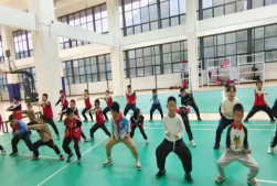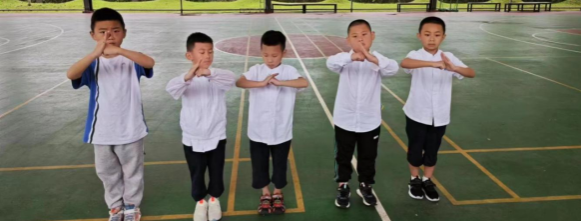 在操场上,参与学生们吃苦耐劳,热情高涨。他们时而马步时而踢腿时而扑步轮拍,更有甚者已经会有模有样的打出完整的套路了,娴熟有力的动作气势十足,“武林高手”的形象呼之欲出。