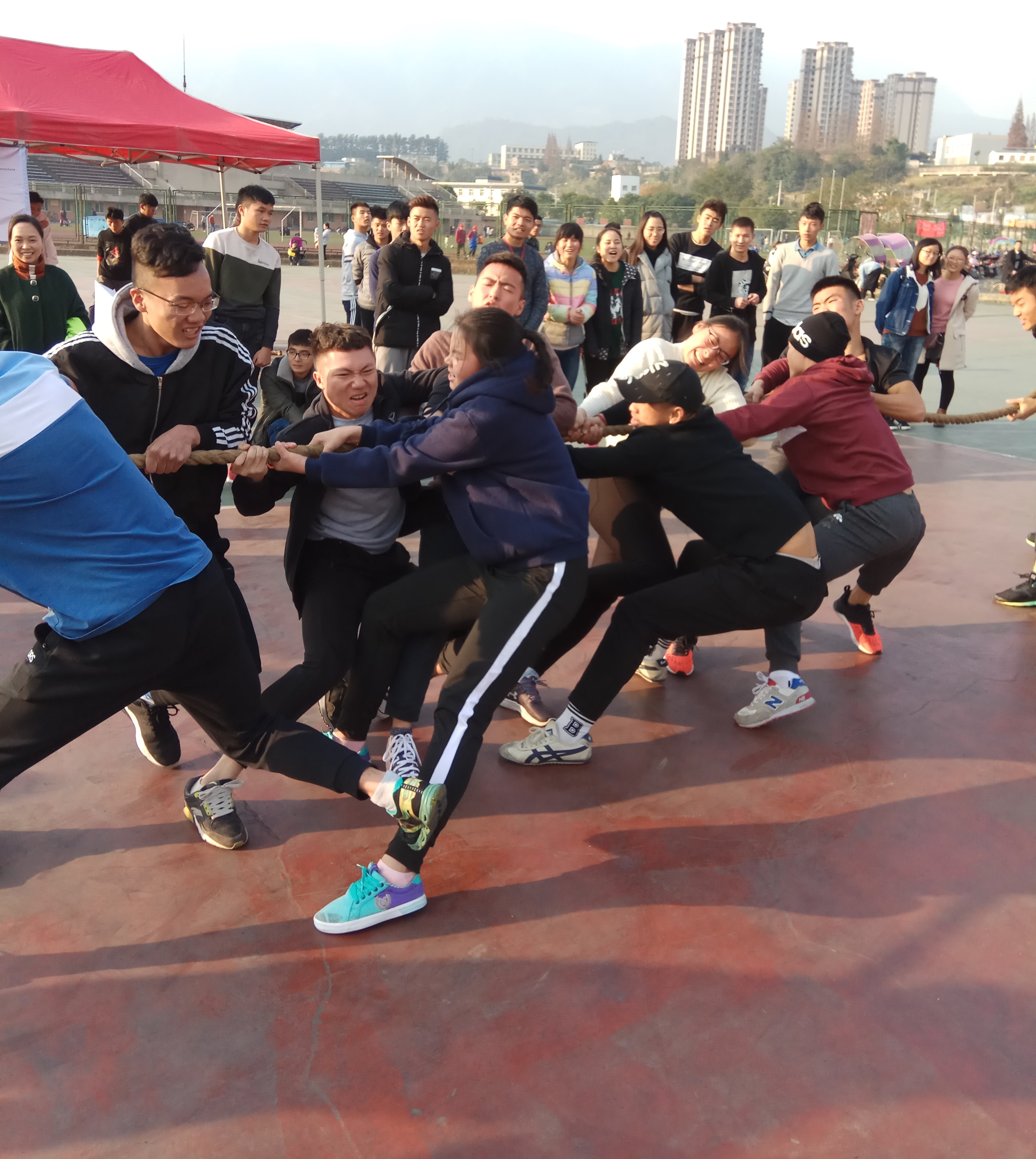 健心运动会是万象城awc888结合专业特色开展的一项心理辅导工作,活动由万象城awc888权益部组织开展。活动以“强身心,炼体魄”为目的,根据各小班参赛实际情况组织并设置了一系列内容丰富,形式多样,针对性强,参与性高的活动。以心理游戏为平台,利用周末空闲时间在操场上开展“计时投篮”,“瞎子背瘸子”,“生命线”,“摸石过河”,“拔河”等各项团体项目。各项游戏看似简单,实际上无不考验队员之间的合作默契和团体精神。在场面最为激烈的拔河比赛中,各组队伍赛前准备的“战术”更是为比赛增添了许多亮点。许多队伍在后面的项目中更是放飞自我,现场气氛异常活跃。