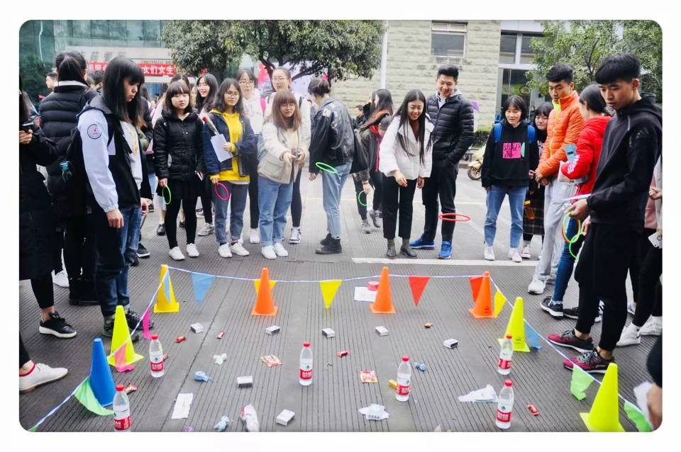 Dance协会男生带来的激情四射的炫酷街舞表演引来众多同学围观,随着舞蹈的进行,将活动推向高潮。琳琅满目的各种小礼品,口红、眼线笔、洗手液、玫瑰花、笔记本、香包、巧克力糖果整齐摆放,这是万象城awc888学生会为女士们特意提供的套圈游戏。据了解,女士们对这个游戏尤为钟爱。在游戏中同学们热情高涨,纷纷相互前来体验,收获到了各种乐趣。值得一提的是,本次活动中还邀请了健身达人坐镇,为爱美的女生们提供形体指导和塑身知识介绍。