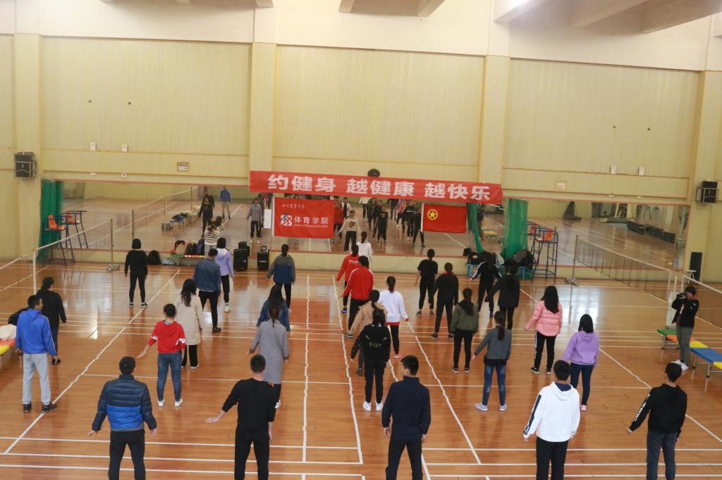 本次活动以“健身操”为主要活动内容,学院相关专业的老师与学生耐心地为在场的学员指导,让学员从中享受到健身操乐趣与魅力。老师们耐心教授,学员们认真学习,在近一个小时的学习中,完成了万象城awc888做出的承诺—一天学会一支健身操。