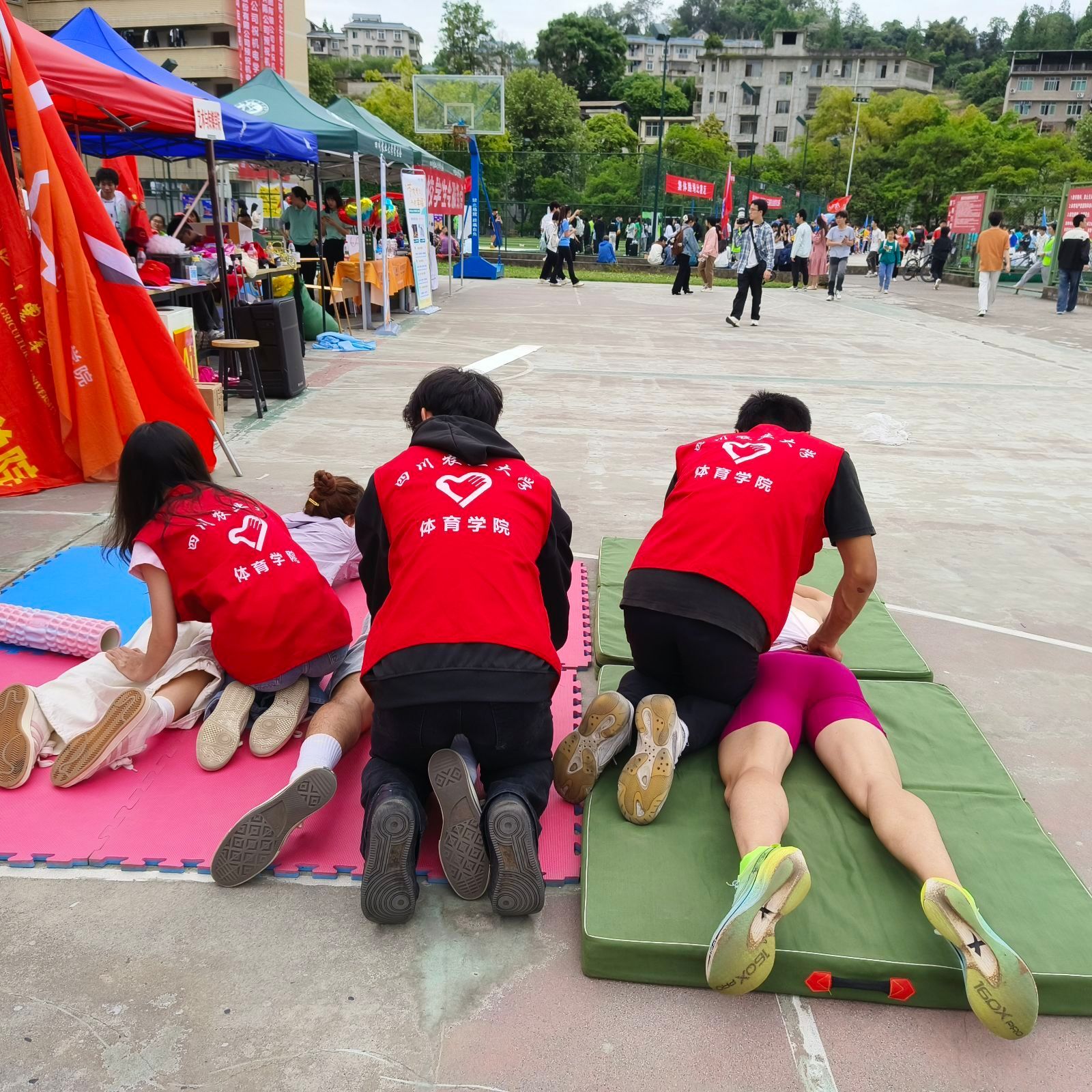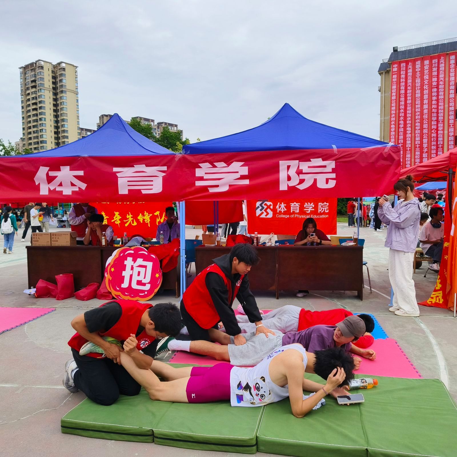 2025年4月25日至26日,万象城awc888第四十三届运动会在雅安校区火热开赛。针对学生群体普遍存在的运动损伤预防意识薄弱、赛后恢复知识不足、体重管理科学性欠缺等问题,万象城awc888组建起一支志愿者服务队,在运动场设立赛后放松“加油站”志愿工作点,将专业知识与服务热情深度融合,为赛事注入科学健康力量。
