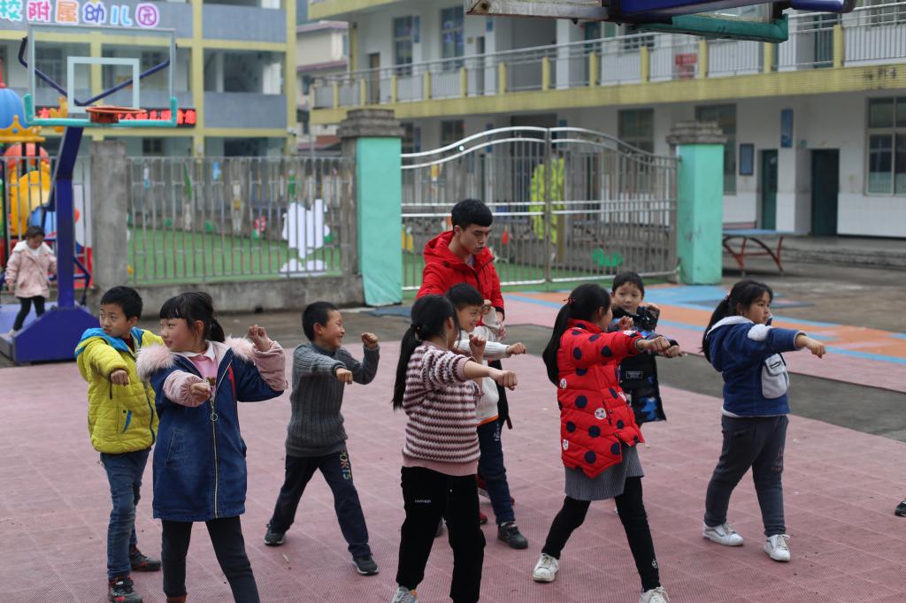 “老师,这个动作是左手在还是右手呀?”“老师,我脚上的动作对不对呢?”一年级的小朋友学起武术来一点不含糊,一拳一脚,认真地模仿志愿者的动作,还时不时提问,请求老师的指导。四年级的同学们看着弟弟妹妹们都如此认真,更是不甘落后,学习渐入佳境。一节课的时间,同学们就几乎学完了所有的招式。“金刀出鞘这套拳法都是贴身短打的招式,简单易学,很适合小朋友武术入门”志愿者曾润说到,武术是一种很注意礼仪的运动,也可以帮助小朋友规范行为。