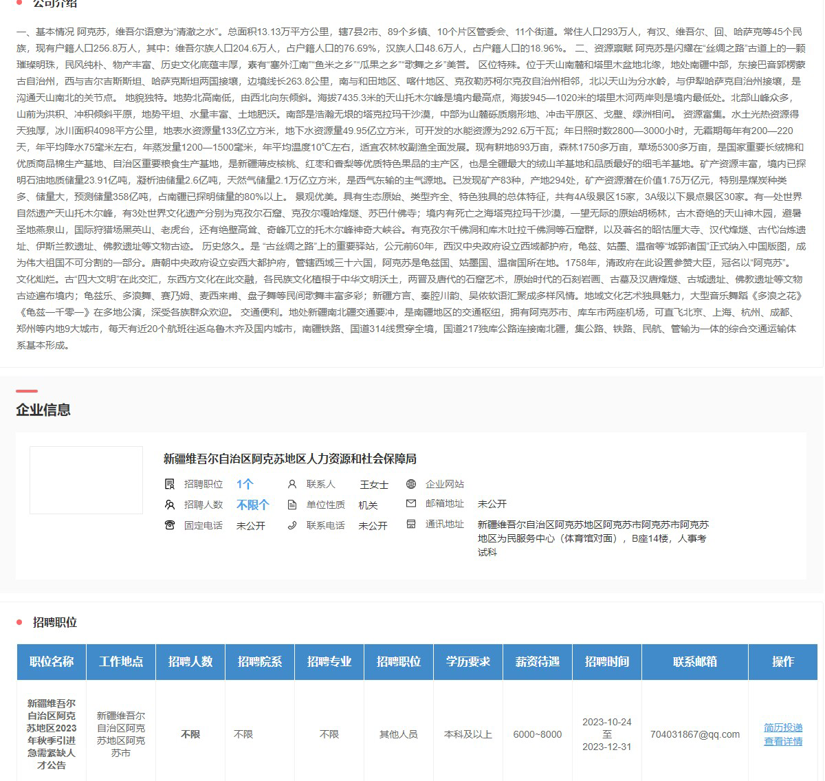 新疆维吾尔自治区阿克苏地区2023年秋季引进急需紧缺人才