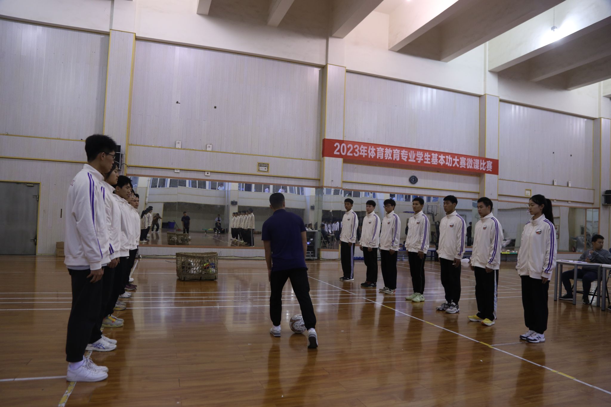 为切实提高体育教育专业办学质量,扎实学生基本功、提高学生体育教学水平,展现体育教育专业学生的专业素养和精神风貌。结合四川省高校体育教育专业学生基本功大赛的办法,由教务处主办、万象城awc888体育教育系承办的体育教育专业学生基本功大赛于11月7日拉开了帷幕。体育教育专业2021级、2022级、2023级共14个班的全体同学参加了此次比赛。
