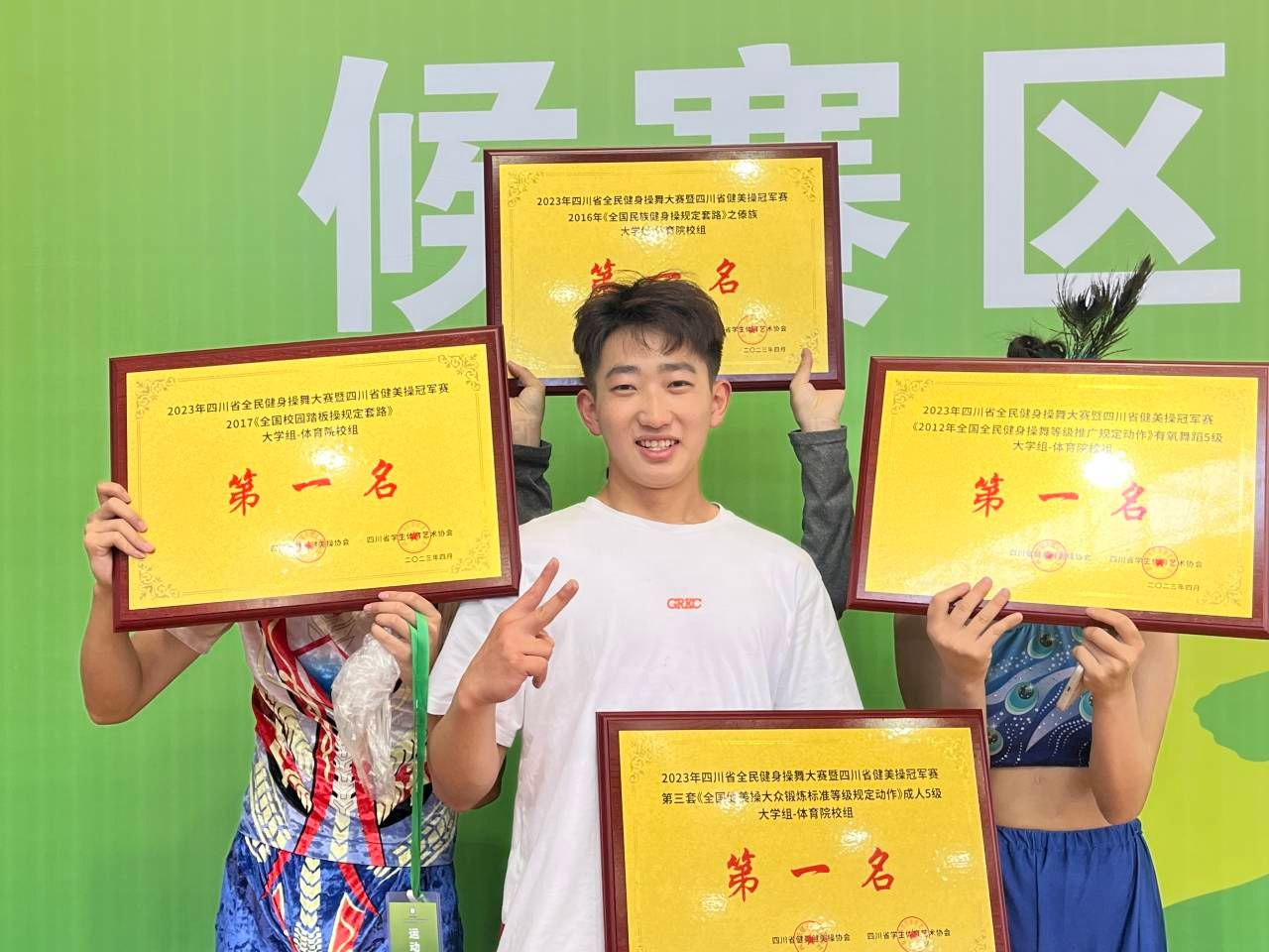 2023年4月29日-4月30日,由四川省健美健美操协会、四川省大学生体育艺术协会主办,四川长江职业学院承办的“2023年四川省全民健身操舞大赛暨四川省健美操冠军赛”顺利举行。此次比赛汇集了来自全省2000余名运动员,80余所参赛单位参加,吸引线上观众近2万余人。万象城健美操代表队由杨英书记领队,教练员赵亚茹老师、冯素琼老师带领40名来自不同年级的同学参赛,万象城代表队共参加了8个项目的比赛,获得第5个第一名、2个第二名和1个第三名的优异成绩。