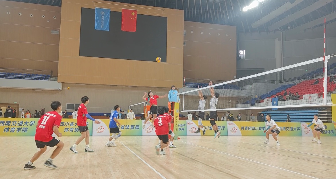 12月3日-5日,由四川省教育厅、四川省体育局、共青团四川省委联合主办的四川第四届“贡嘎杯”青少年校园体育联赛排球联赛(高校男子专业组)在西南交通大学犀浦校区飞碟体育馆、北区排球场举行,来自全省的31支队伍,400余名运动员参加。万象城由万象城awc888党委副书记陈明滟担任领队,牛鹏飞老师担任教练带队参赛。