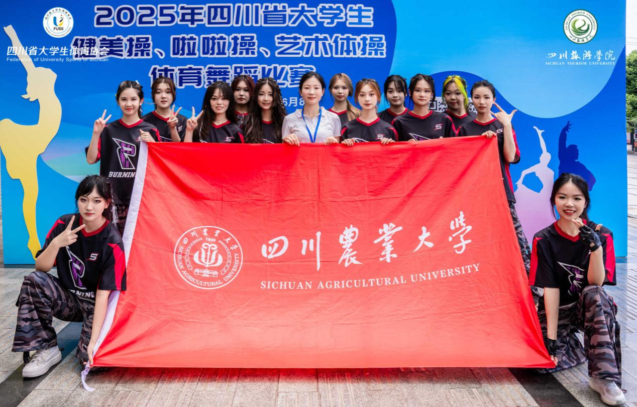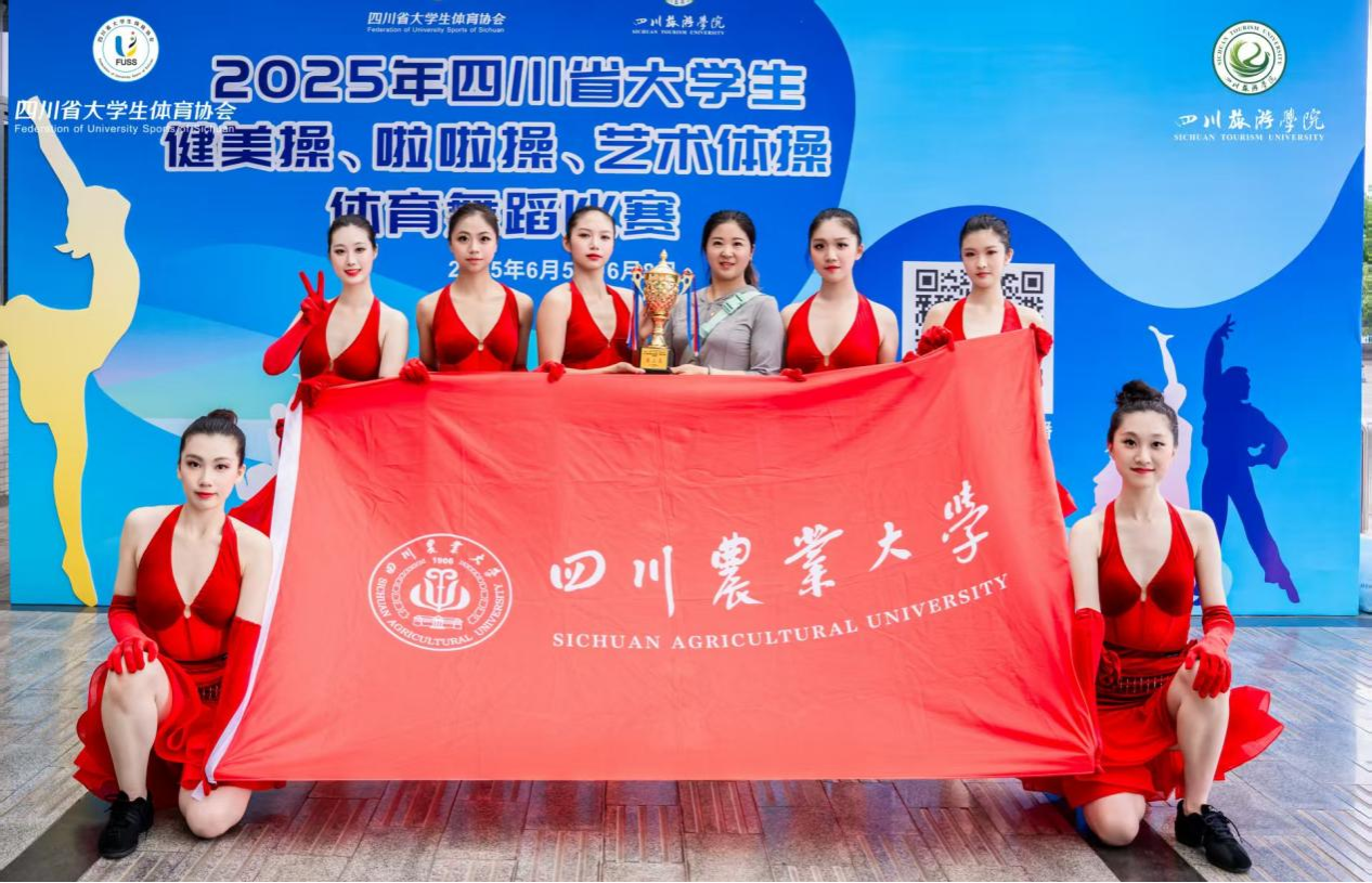 成都校区健美操队(指导老师:冯素琼):动作整齐、表现稳健,荣获大众健美操规定套路《美丽中国》第三名和排舞集体规定套路《准备出发》第三名,展现了川农学子的青春活力。
