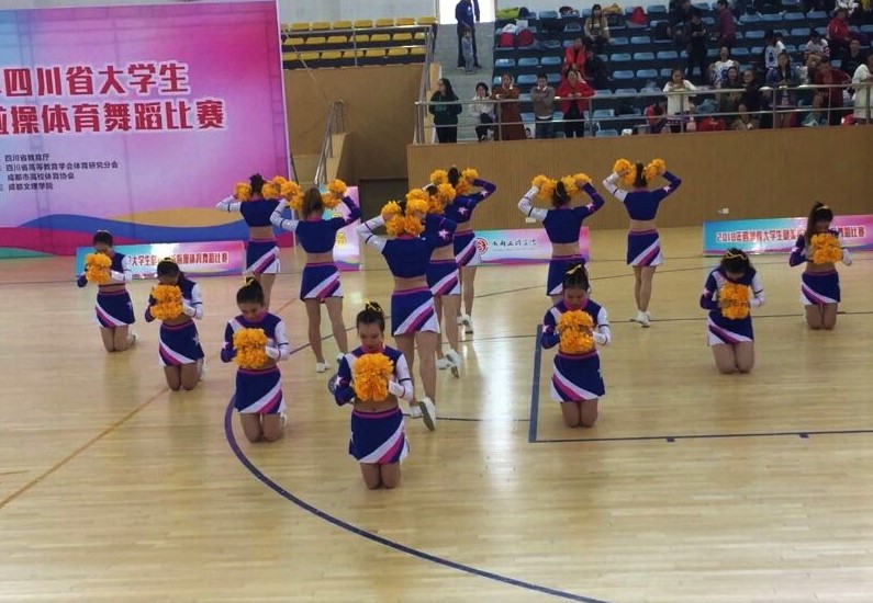 10月19—21日, 由四川省教育厅主办,四川省高等教育学会体育研究分会、成都市高校体育协会协办的2018年四川省大学生健美操啦啦操体育舞蹈比赛在成都文理学院顺利举行。万象城62名同学在万象城awc888党委书记杨英,教练余明荣、赵亚茹、王燕和王姝燕老师的带领下参与了体育专业组和普通院校组比赛。万象城万象城awc888杨军教授担任健美操啦啦操比赛副裁判长,余明荣老师担任体育舞蹈比赛裁判。