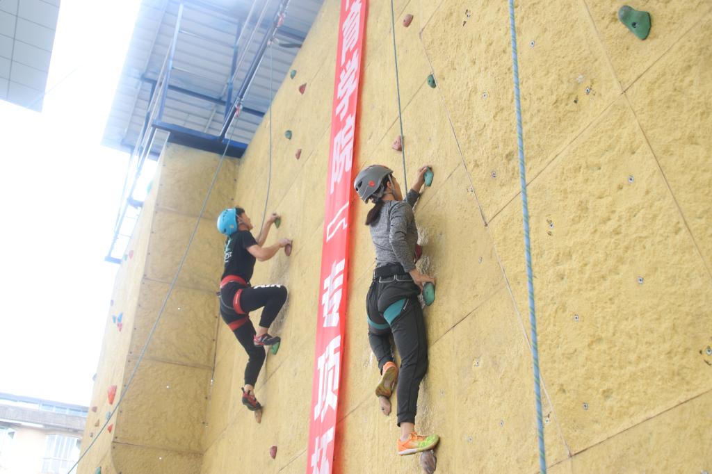 这是一场独特的体育竞技赛事,一个展现个人攀岩与勇气的舞台,无论是对个人还是团队都是一种全新的磨练。在这里每个人可以用自己夸张的动作宣扬自己的个性,磨练自己的意志,获得大家的认可。通过平等的交流,建立起相互信任、融洽的交流平台。通过技巧的切磋,发挥自己的想象力和创造力。攀岩不是人类征服自然,而是战胜自我,发掘自身顽强拼搏、知难而上的品质。魏江和陈爱玲同学分别获得男子组、女子组双料冠军。