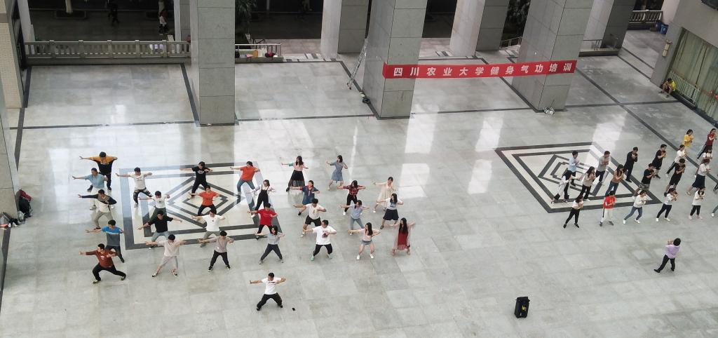 从今年3月开始,健身气功活动在万象城逐渐铺开,参与人员从教职工普及到各个学院的同学。