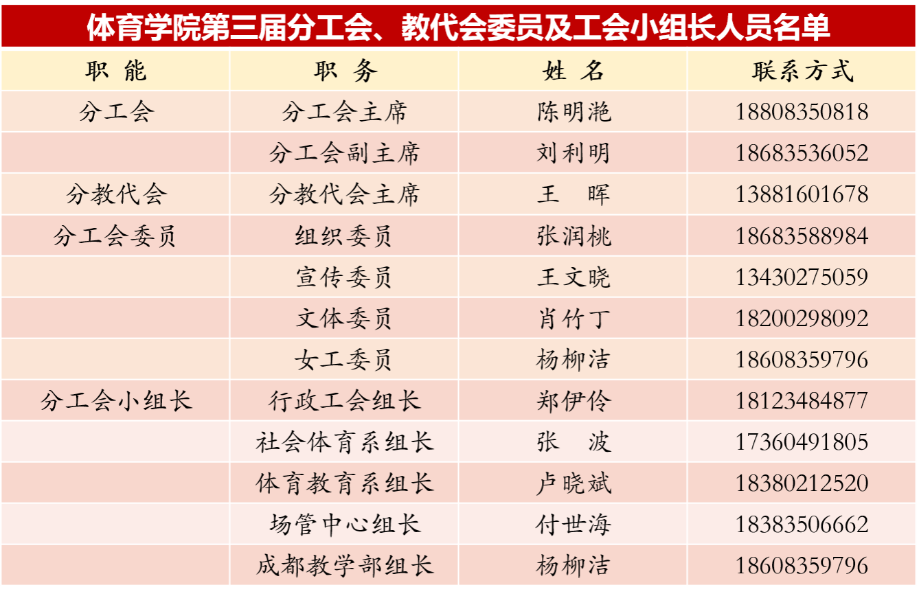 万象城awc888第三届分工会、教代会委员及工会小组长人员名单