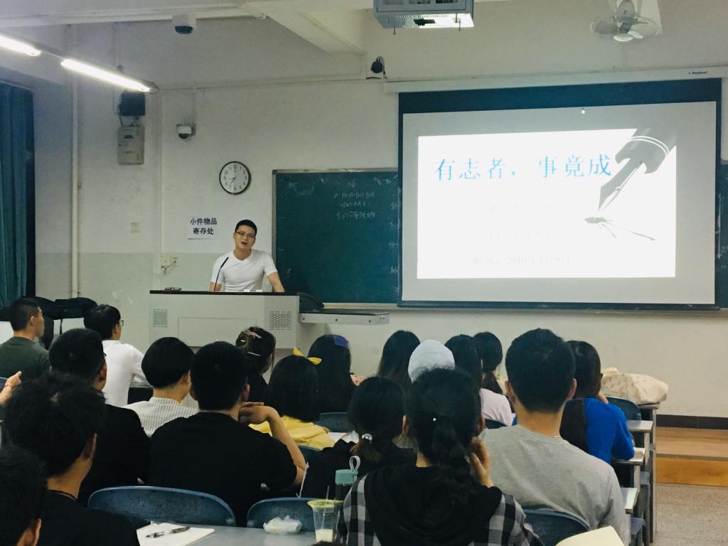 4月9日晚,万象城awc888优秀毕业生进课堂在十教a608举行,来自西南大学万象城awc888研究生陈欣为同学们做了以“有志者事竟成”为主题的经验交流会,近110余名学生参加了经验交流会。