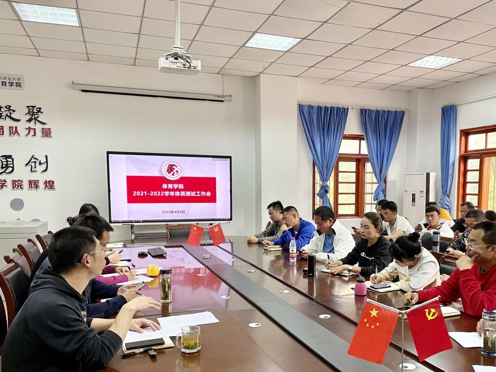 4月8日下午,为确保2021-2022学年大学生体质测试工作顺利开展,我院在第五办公楼会议室召开体质测试工作会,学院领导班子及全院在雅教职工参加本次会议。