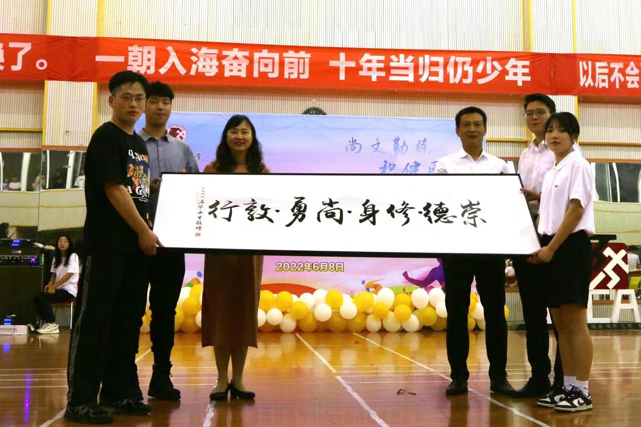 干脆帅气、高贵美丽、时而狂野、时而典雅,以拉丁之美诠释《逐梦之舞》,以婀娜多姿尽显青春本色。此曲只应天上有,人生难得几回闻,学院老师以《小城故事》概述这匆匆四年的点点滴滴,表达不舍的同时也对他们的未来寄予厚望。新生献礼《青春再启航》,毕业可能是结束,但更是开始、是启航。弹唱串烧《爱你》,可你才是那最美丽的风景,所有美好都像你,校吉他协会以优美的曲调表达对2022届毕业生纯真的祝福。健美操队的《一起向未来》是藏在灵魂里的语言,祝愿体院学子未来可期、不负韶华。晚会期间穿插了抽奖和互动游戏环节,全体师生其乐融融,一片欢声笑语,晚会最后毕业生代表还向学院赠送了“崇德修身尚勇敦行”的牌匾。