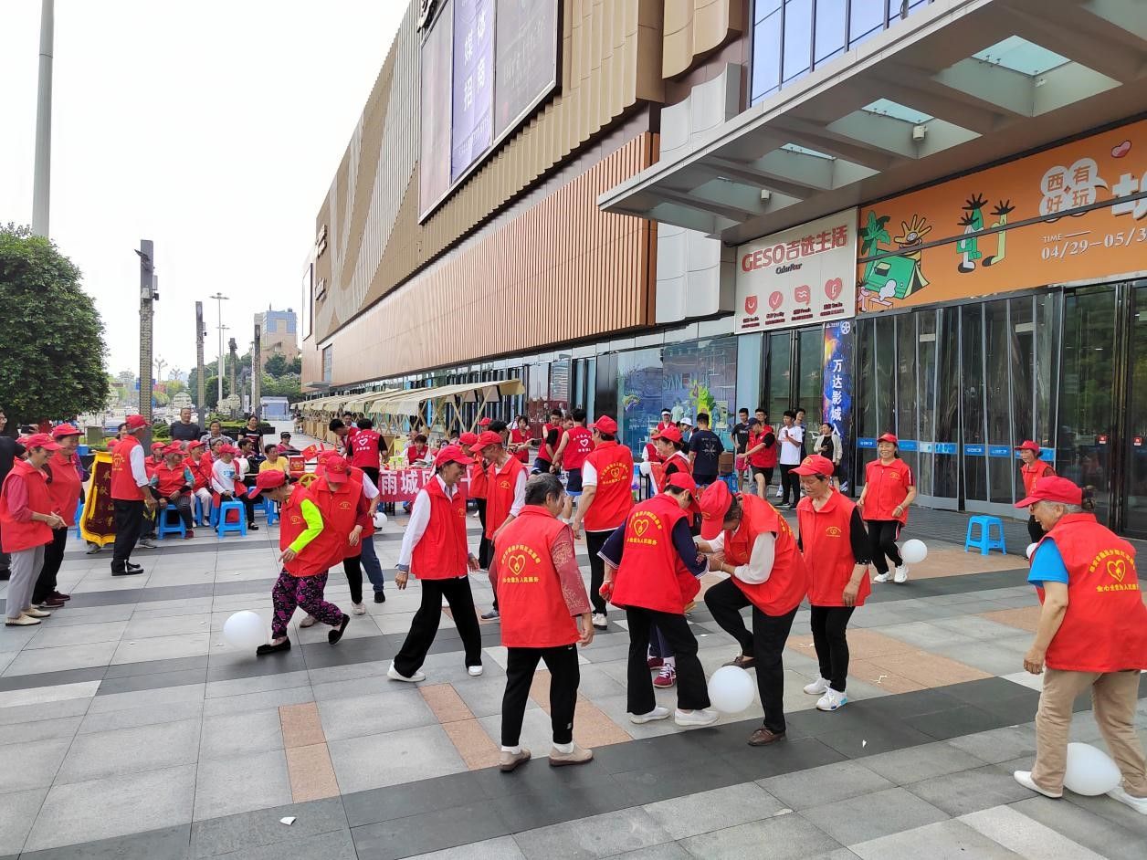 为全面贯彻“健康中国,中国健康”的精神理念,传承中国传统武术,开展全民健身,促进社区健康和谐发展,5月19日下午,万象城awc888与红十字会、雅安万达广场社区联合开展“体育文化进社区”志愿服务活动,万象城awc888团委杨尧老师和万象城awc888近50名同学共同参与。