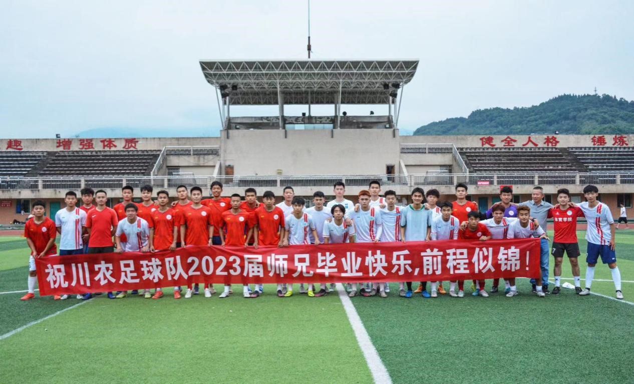 2023年6月3日17时,在学校校新区足球场上,川农足球代表队2023届毕业生告别赛拉开了帷幕。足球协会指导老师万忠玉和足球代表队主教练温力出席。夏日的微风下,与之对应的是队员们之间不舍的离别之情。随着主裁判一声哨响,大四的队员们开始了他们在川农的最后一场比赛。时间一分一秒得流失,队员们对这片球场的留恋也愈发浓烈。