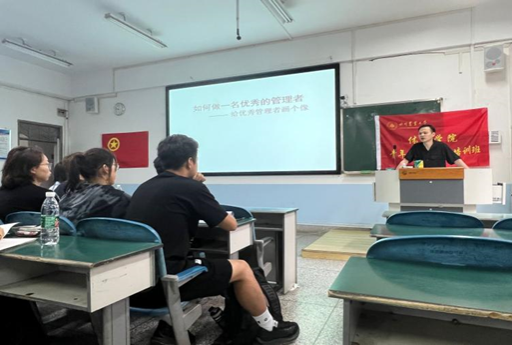 此次培训班邀请了学院党委书记杨英、党委副书记陈明滟、党委办公室主任匡薇、党委办公室杨尧、郑伊伶老师,分别以《学习习近平新时代中国特色社会主义思想》、《如何做一名优秀的管理者》、《读习语金句》、《深入觉醒年代,点亮青春底色》、《争做新时代中国新青年》开展了授课。