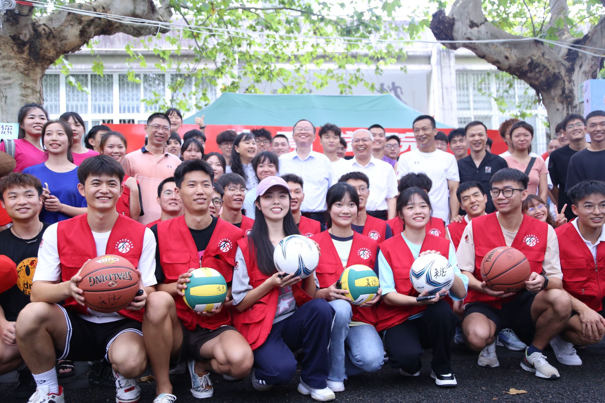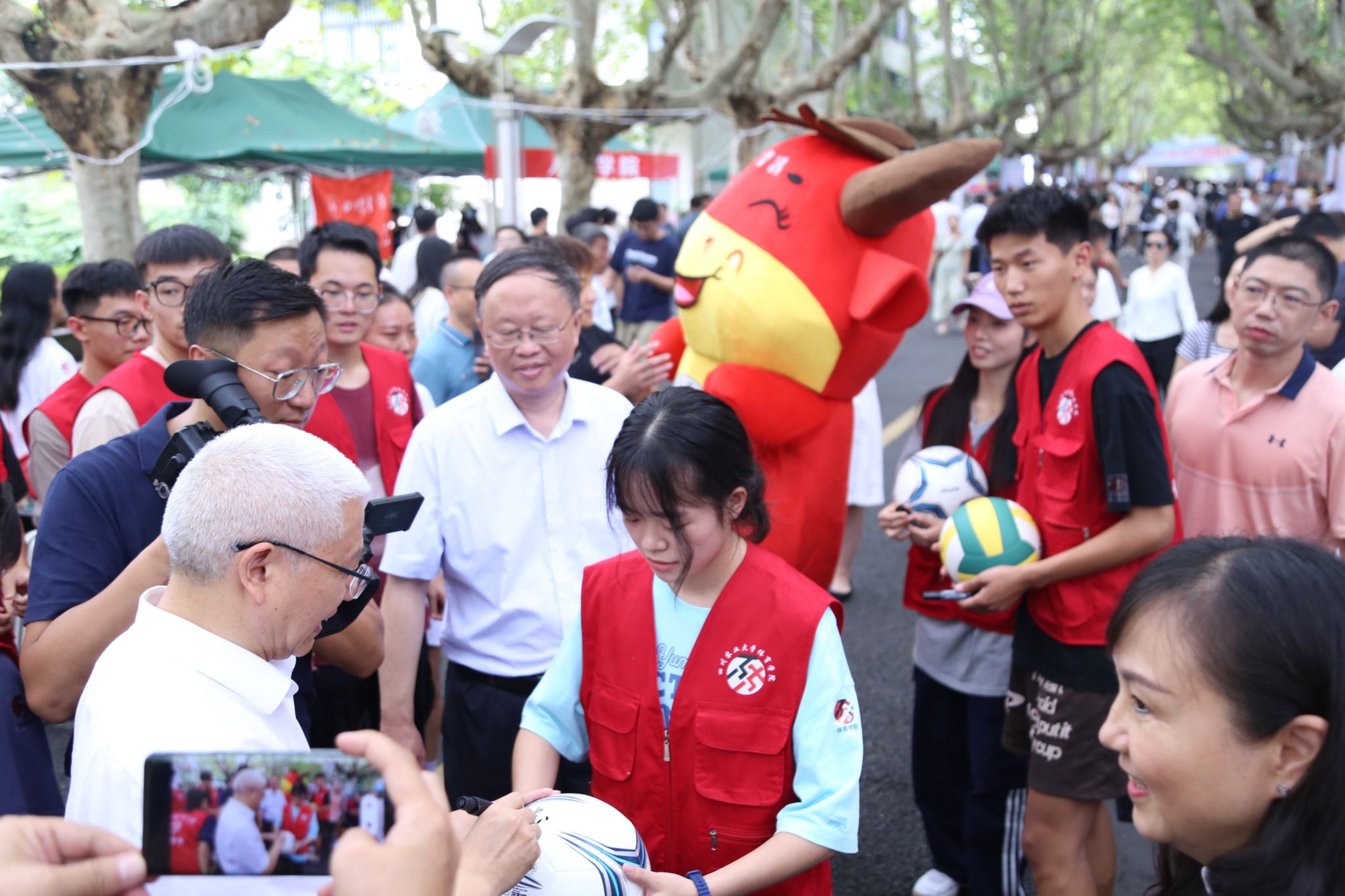 迎新点上学生还邀请吴德校长和张强副书记在分别在篮球、足球、排球签字,并将作为新生礼物在学院新生大会上赠送给新生。两位领导与新生们亲切地交谈,详细地询问新生们的入校情况,并鼓励大家主动适应大学生活,树立目标、做好学习规划,学好专业本领,不负时代、不负韶华,以昂扬奋斗的青春姿态,开启人生的新篇章,特别是要为“健康中国”的目标做出川农体育人的贡献。