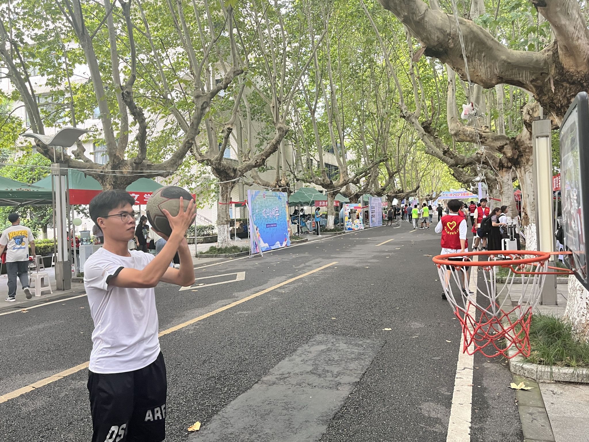 “萌新报到,抽个盲盒吧!”学院今年特意安排了迎新现场抽盲盒活动,全体新生均可抽取一次。奖品除了水杯,鼠标,u盘,钢笔等还专门设计了“与班主任共进午餐券”“师兄师姐学业帮扶卡”“老师一对一谈心谈话卡”等“有趣的礼物”给新生们送上了特别的惊喜。除此之外还有学生党员带领新生了解入党流程、院情学情、优秀学生事迹和生涯幻游心愿墙的职业生涯引领教育;有植入党史、团史、校史,融合学校各类规章制度知识转盘趣味竞答的安全法纪教育;有结合学院特色的运动游戏——扣篮、摸高以及为新生扣上一粒定制扣子的仪式感教育......其中与学院文化专属背景板特色打卡拍照依旧是最受新生和家长的亮点环节。我院布置了丰富多彩的迎新标语和展板,营造了浓厚且暖心的迎新氛围,大家纷纷驻足打卡合影,记录下这珍贵美好的瞬间。