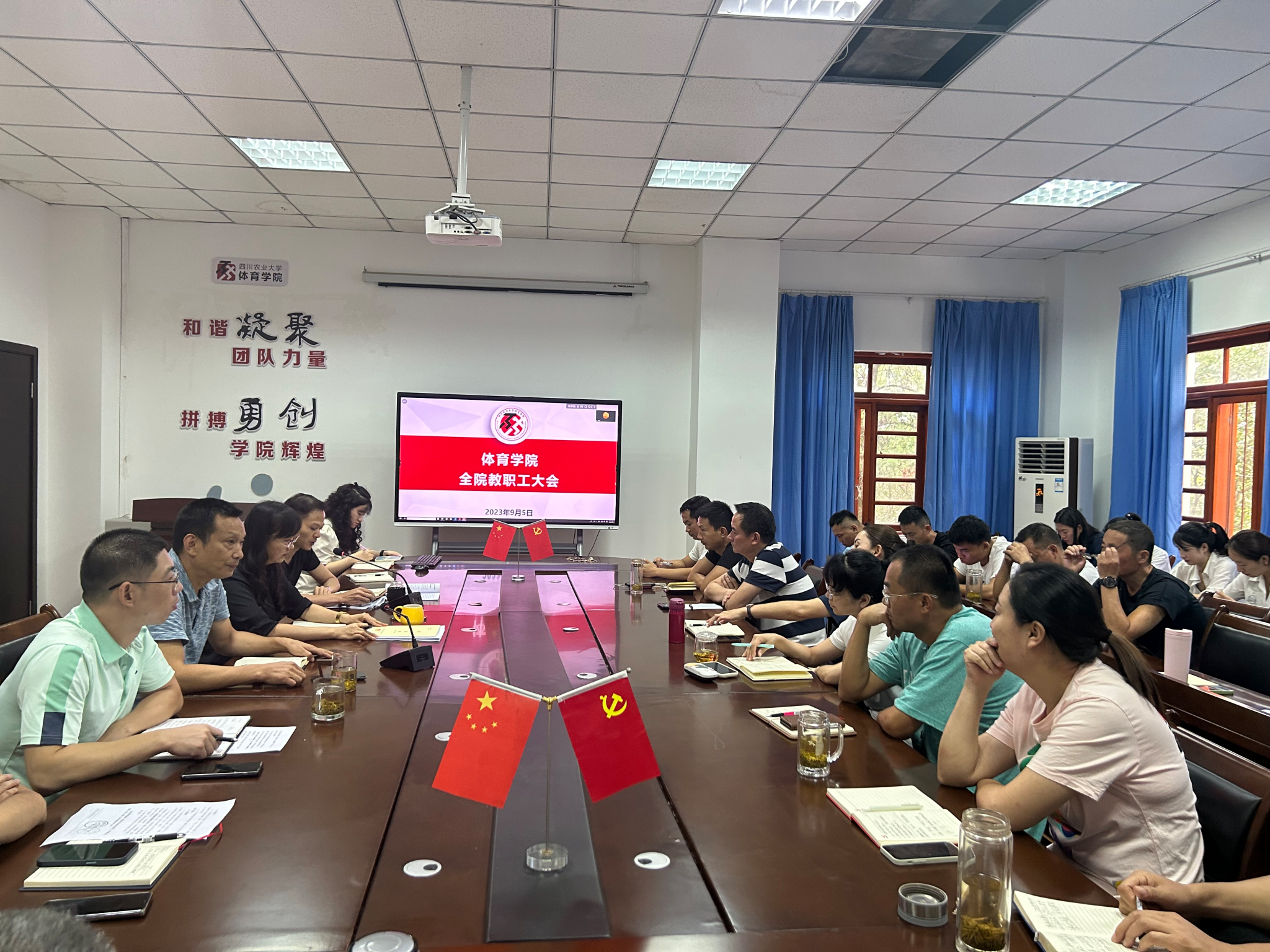 9月5日下午,万象城awc888在第五办公楼202会议室召开了全体教职工大会。学院领导班子、全体教职工参加了会议。大会由学院党委书记杨英主持。