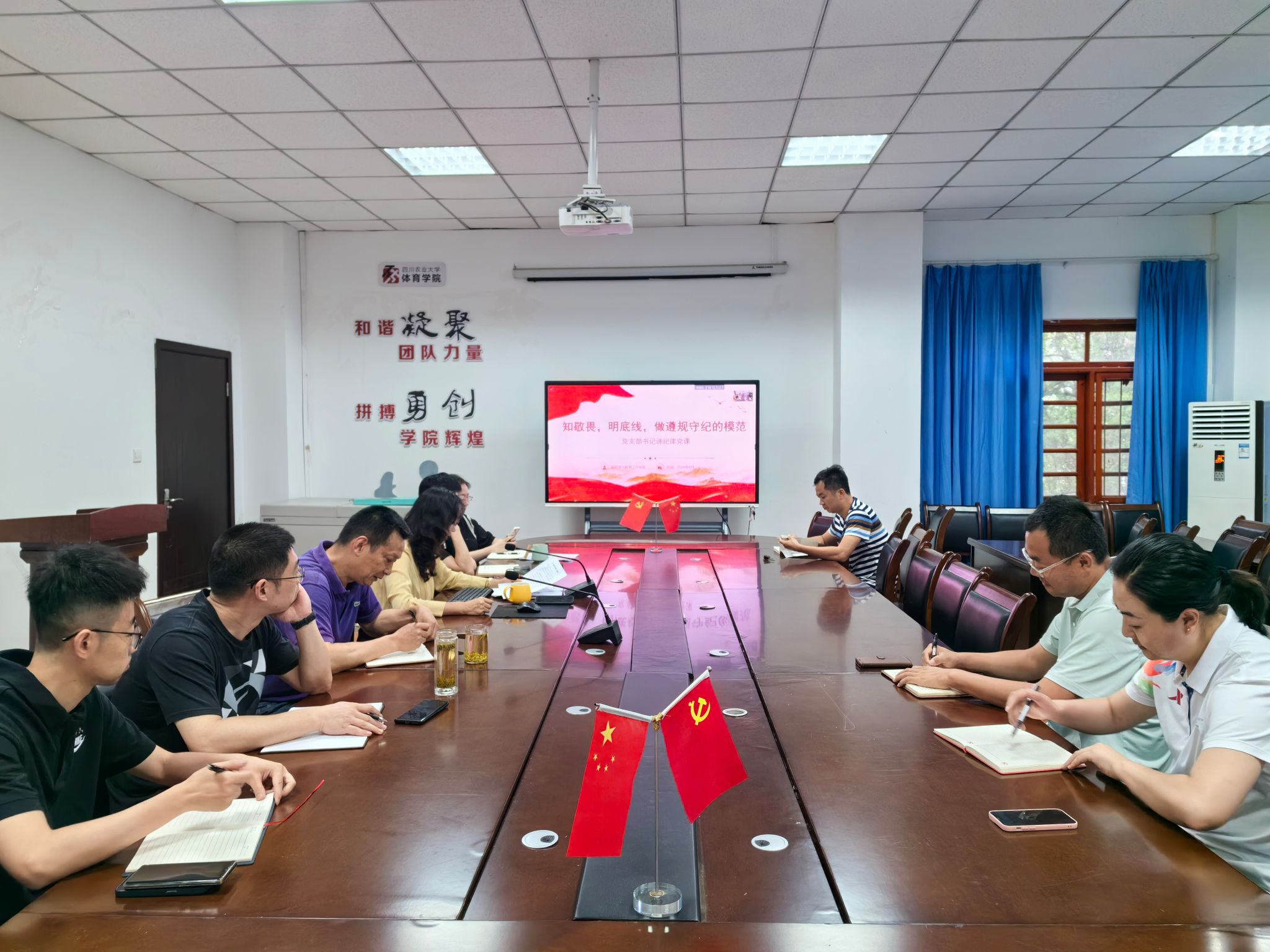 杨英向与会人员详细讲解了《中国共产党纪律处分条例》六项纪律负面清单,要求大家要踏踏实实、原原本本,逐字逐句诵读,逐条逐章分析,全面系统地把握好党的纪律规矩。随后,她组织与会人员逐一学习典型案例,结合原因剖析谈反思体会。她强调全体师生要加强纪法学习,要积极主动学,要原汁原味学,要反反复复学,将党纪消化吸收、融会贯通;从思想上、政治上、行动上对标对表进行对照检查,以案为鉴、警钟长鸣;时刻用党规党纪校正自己的思想和行动,坚守纪律红线,不越雷池一步。党员干部要发挥好先锋模范的作用,做遵规守纪的模范。