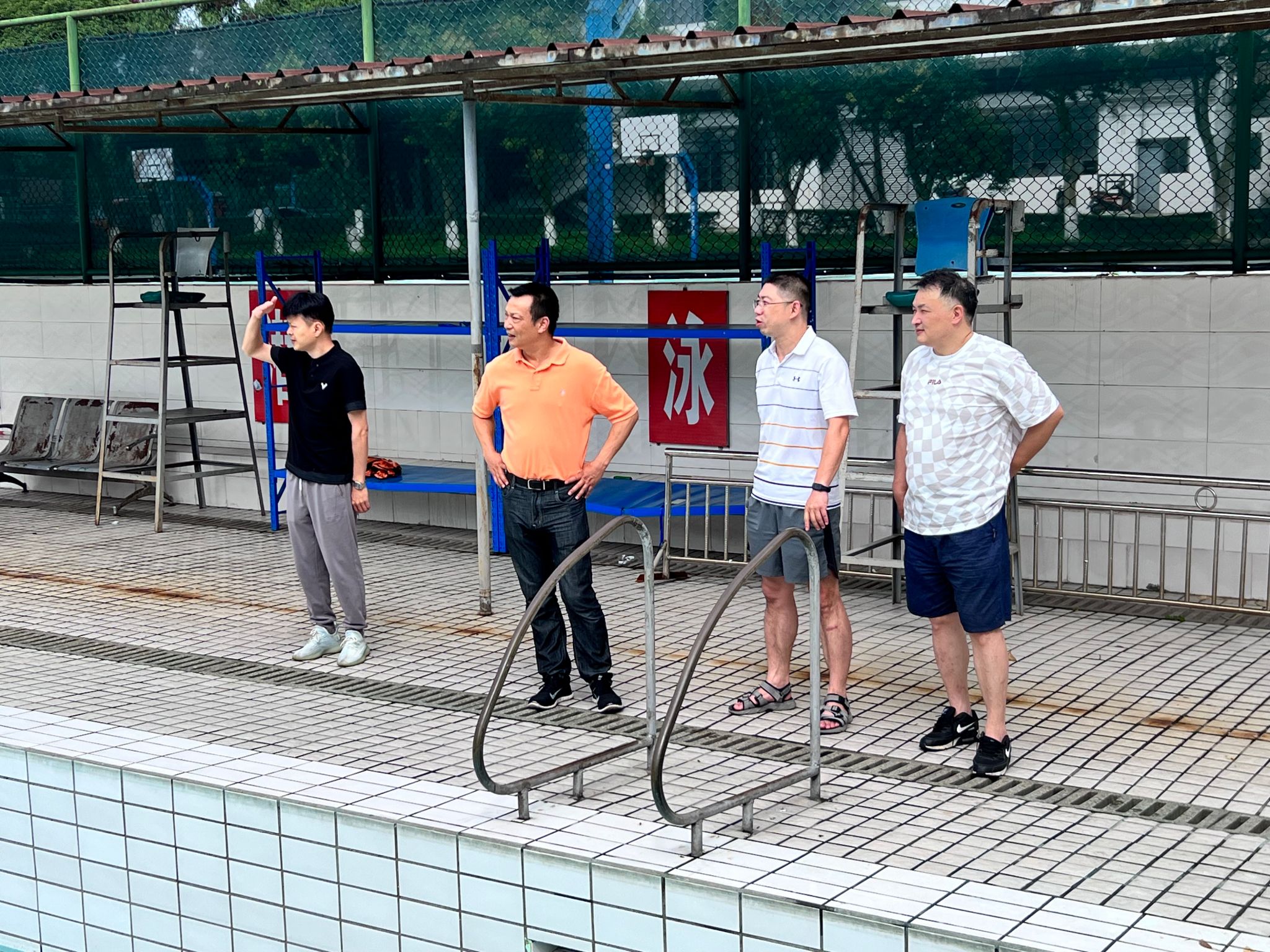 学院领导班子对新老校区田径场、体育馆、游泳池等室内外场地依次进行了检查,过程中领导班子要求暑假期间各室内场地务必要断电、上锁,做好防火防盗工作,杜绝任何破坏运动场、游泳池的行为出现,特别指出游泳池关闭后要将水位控制在安全范围内,并且假期要定期巡查。成都校区健身房和风雨操场假期将定期开放,对值班人员提出了安全要求。王建强最后强调,假期如出现暴雨天气后要时刻关注游泳池的积水情况,防范意外情况的发生。