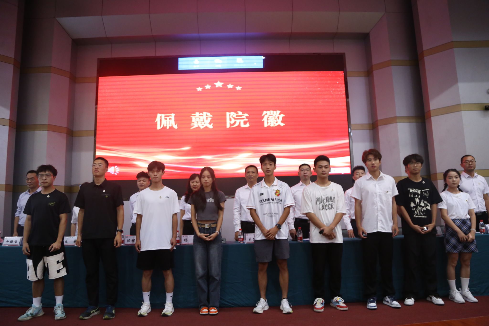 台上就座的领导为新生代表佩戴院徽,全体新生起立自行佩戴院徽。戴上院徽就是川农体育人,角色和身份在这里开始转变,梦想新的征程从这里开始起航。