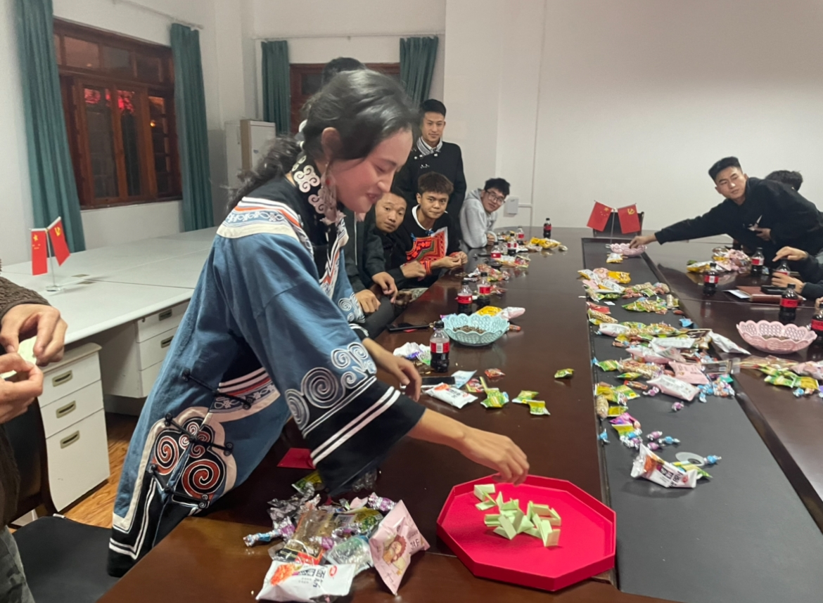 座谈会还专门设计了联谊活动。彝族同学们身着节日盛装,带来了精彩的服装走秀和富有民族特色的歌舞表演,展现了彝族文化的独特魅力和深厚底蕴。学院也为同学们准备了寓意吉祥的二十几个新年红包,最大的有200元,大家通过趣味游戏抽取不同金额的红包,现场欢声笑语不断,洋溢着浓浓的节日氛围。