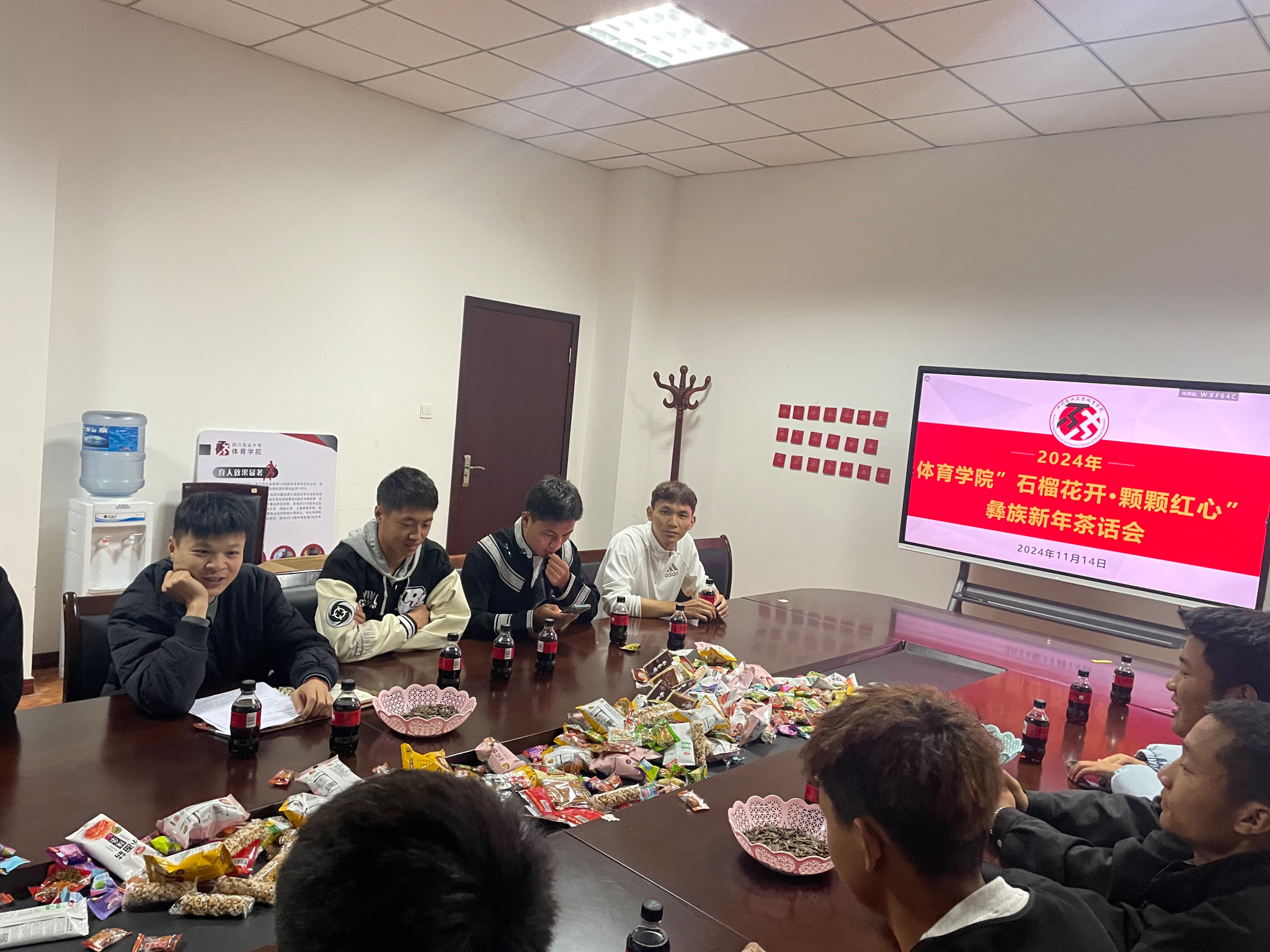 11月14日,万象城awc888五政201会议室内洋溢着浓厚的节日氛围,一场以“石榴花开·颗颗红心”为主题的民族学生茶话会系列之彝族新年座谈会在此隆重举行。来自学院各年级的十余名彝族同学与师生代表欢聚一堂,共同庆祝这一充满民族风情的节日,深化民族团结情谊,传承和弘扬民族文化。