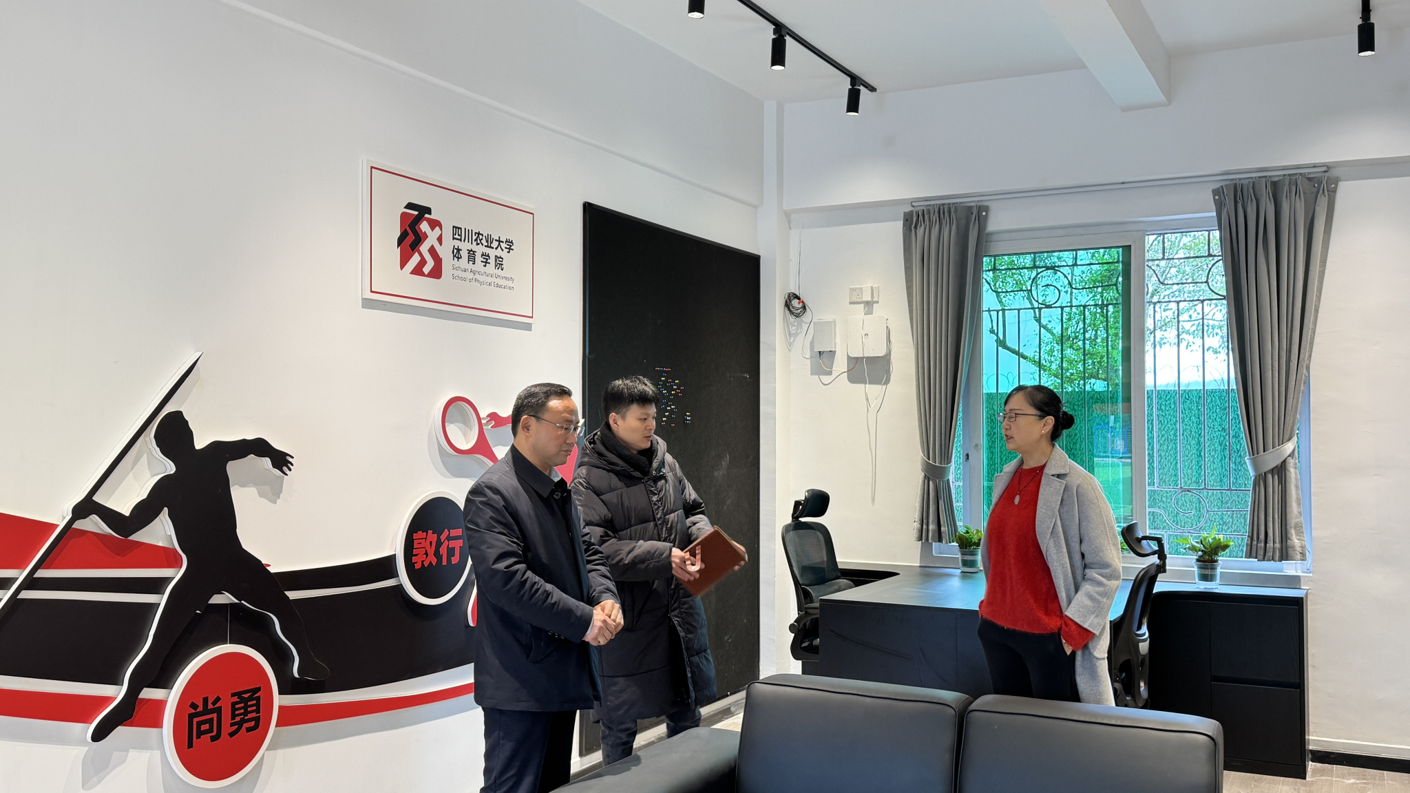 杨英首先代表学院对学校工会的大力支持表示衷心的感谢,这为我们体育教师在新区上课提供了一个更为惬意舒适的休息场所,工作环境越来越好,教职工的幸福指数也就越来越高了,并表示我们将继续更加倾力支持全校师生的各项体育赛事和活动,将这份幸福指数传递下去。