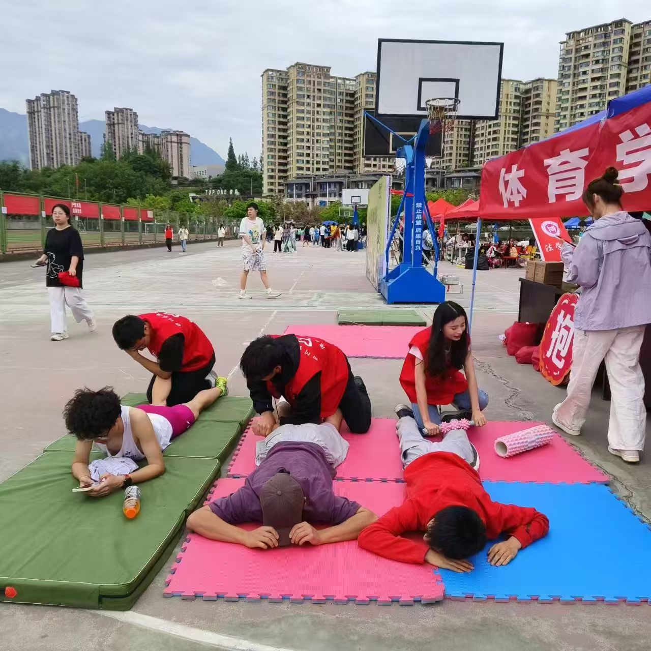 针对学生群体普遍存在的运动损伤预防意识薄弱、赛后恢复知识不足等问题,万象城awc888组建起一支由132名师生构成的"运动加油站"志愿服务队,在篮球场设置4个专业服务点,构建起覆盖赛前指导、赛中保障、赛后恢复的全方位服务体系。