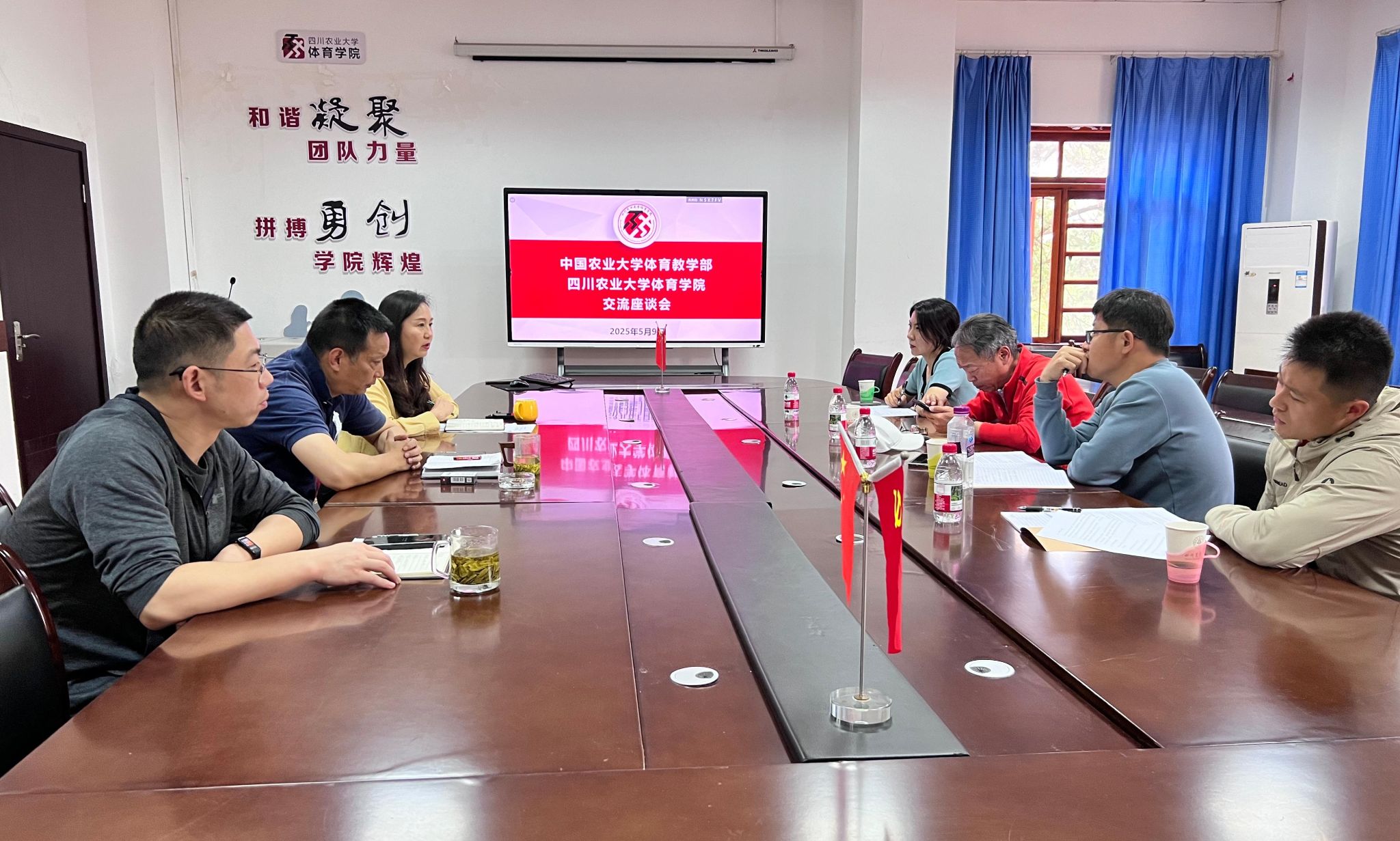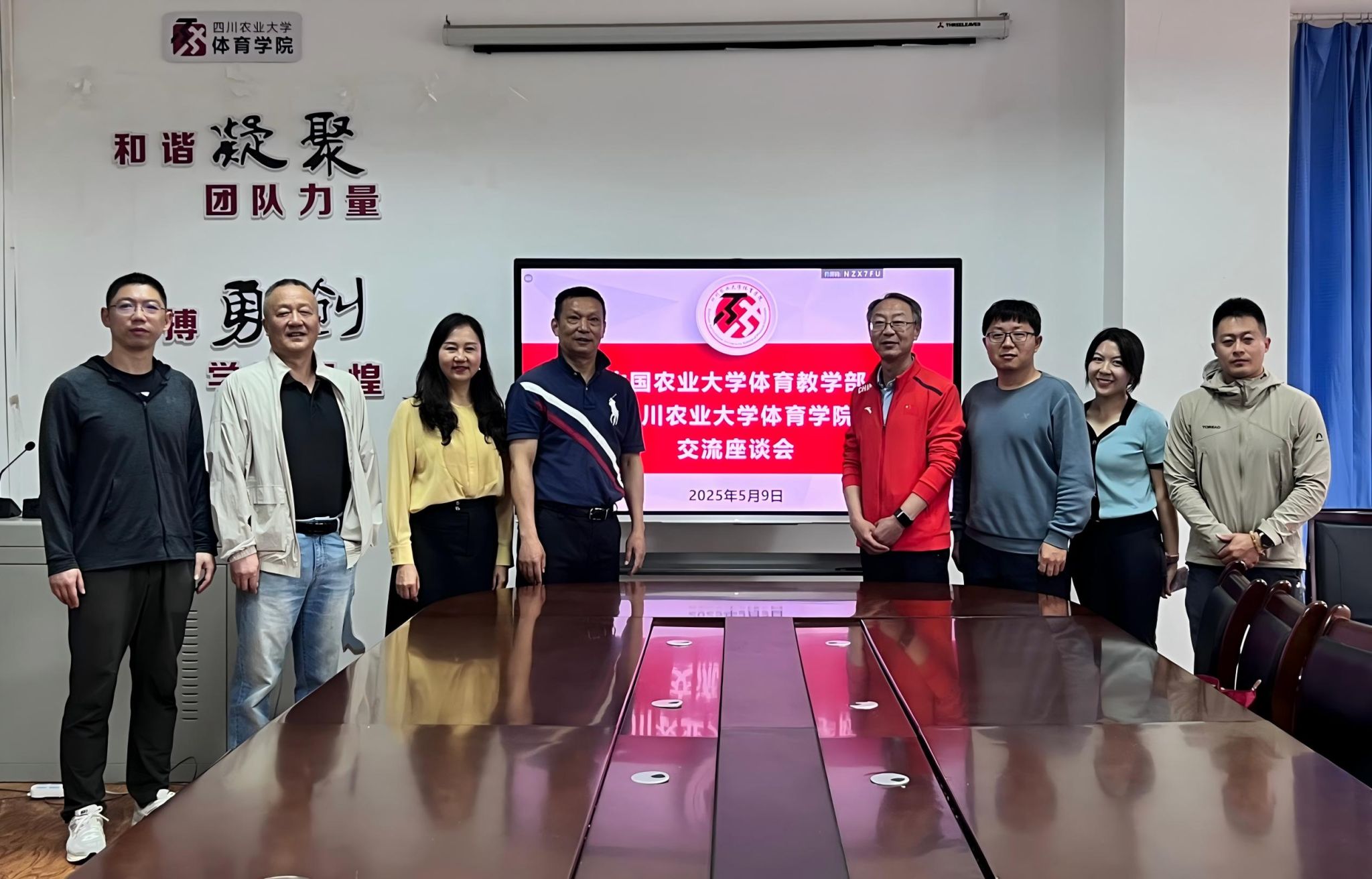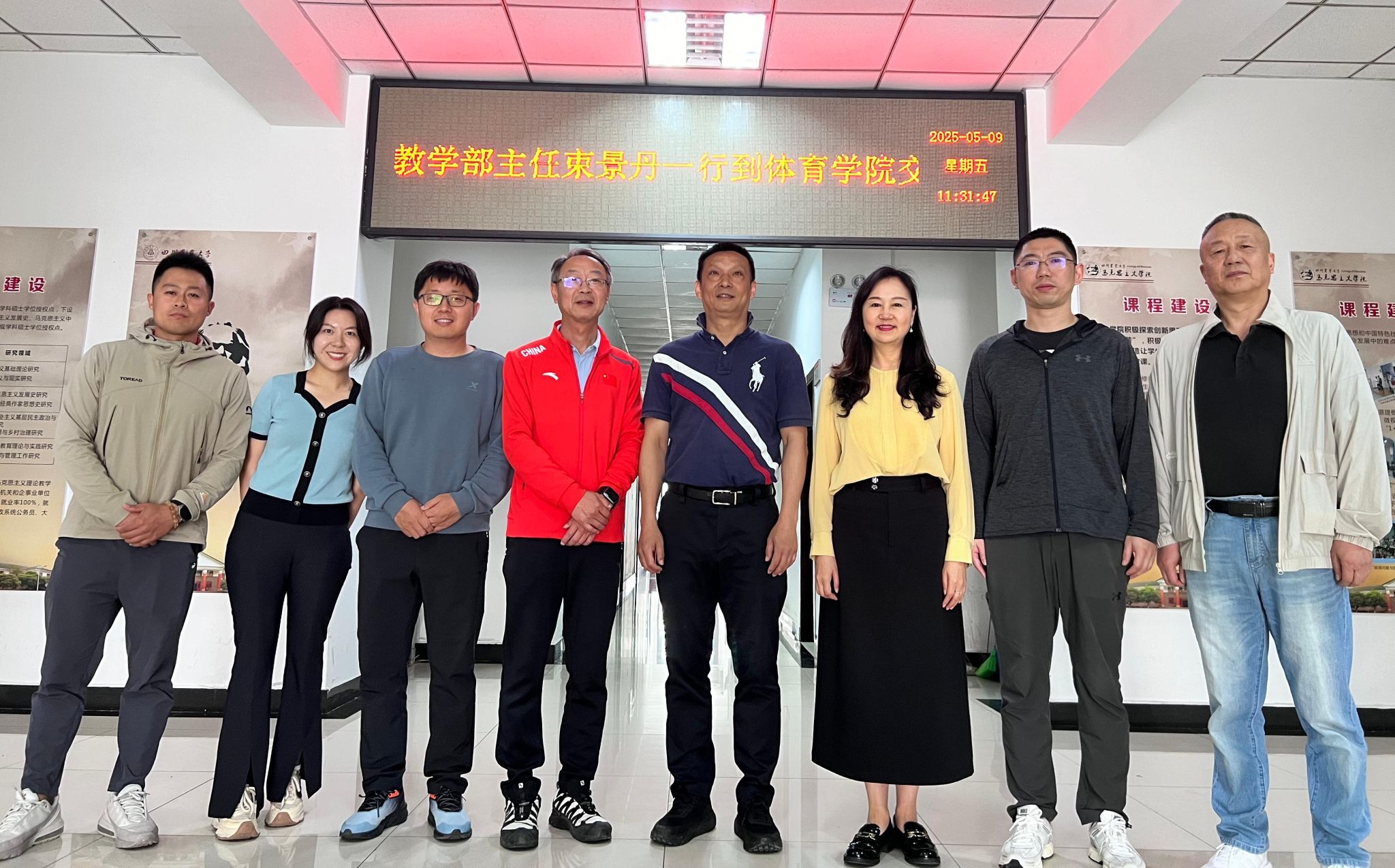 5月9日,中国农业大学体育教学部主任、党支部书记束景丹,体育教学部副主任王永生等一行四人到访万象城awc888。双方就党建工作、师资队伍建设、体育教学以及学生体质健康等议题展开了深入友好的交流。座谈会在第五办公楼202会议室举行,万象城awc888院长王建强、党委书记杨英、副院长刘骞出席此次交流活动。王建强首先对来自中国农业大学同仁的到来表示热烈欢迎,并详细介绍了学院的专业建设、公共体育教学以及师资队伍现状等方面的情况。随后,杨英分享了学院在党建工作、课程思政方面的具体举措及取得的成效。