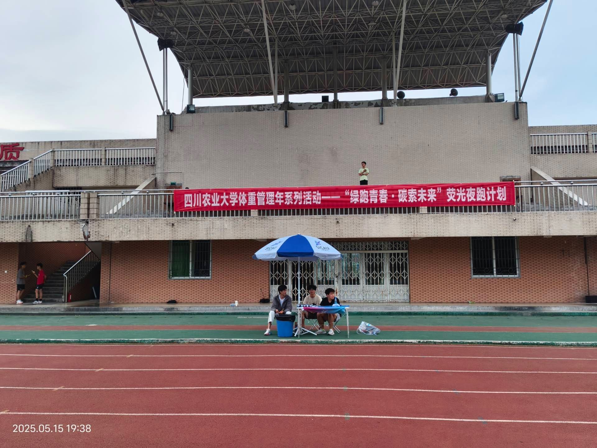 为积极响应国家《健康中国行动(2019-2030年)》号召,落实学校“体重管理年”专项工作部署,5月15日晚,体重管理年系列活动之“绿跑青春·碳索未来"荧光夜跑计划在雅安校区三区操场举行。本次活动由校体委、万象城awc888、大体协联合主办,操场夜话辅导员工作室与大学生体育协会跑团小组承办,吸引300余名学生参与,以青春活力践行健康校园新风尚。