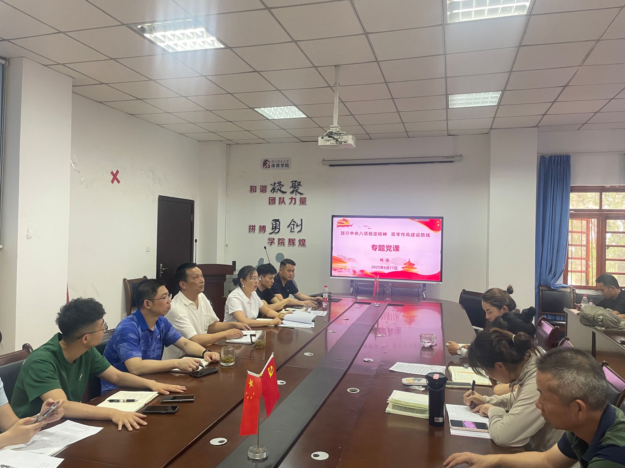 杨英以“践行中央八项规定精神,筑牢作风建设防线”为主题面向全院教职工开展了专题党课,她围绕中央八项规定精神的深刻内涵、出台背景及历史性成就,结合违反中央八项规定精神的典型案例进行了深刻剖析。她强调,作风建设永远在路上,必须常抓不懈、久久为功,全体教职工要传承老一辈体育人的优良传统,务必要将中央八项规定精神内化于心、外化于行,深刻认识其作为长期有效的铁规矩,时刻绷紧纪律之弦,做到心有所畏、言有所戒、行有所止。他要求各党支部切实扛起主体责任,将纪律教育融入日常、抓在经常,确保压力传导到位、责任落实到位。