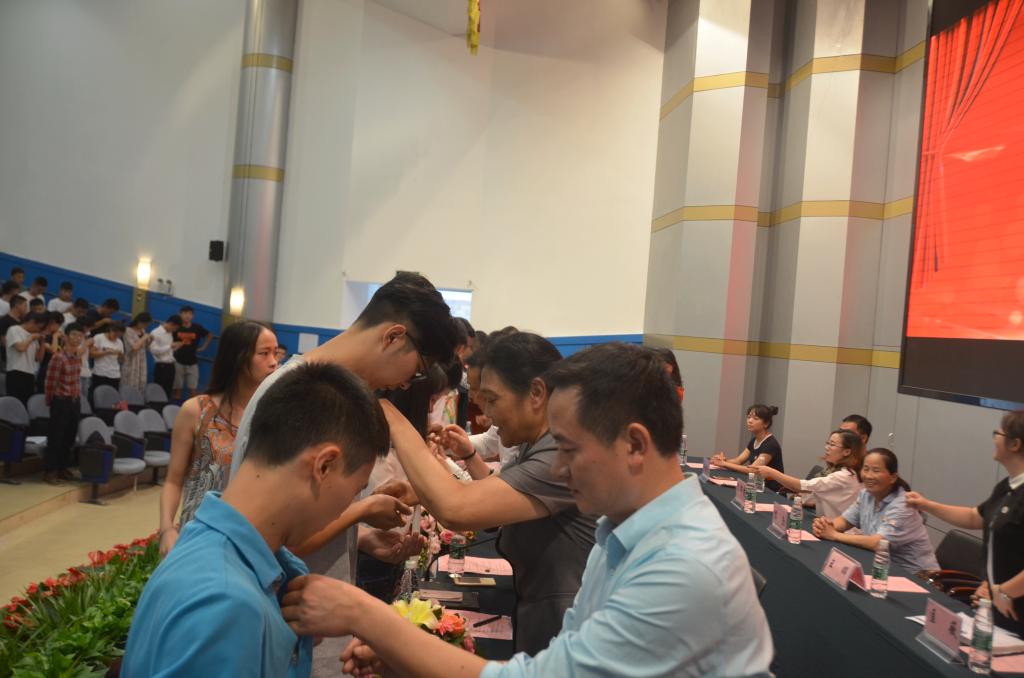9月8日,在逸夫楼小礼堂举行全院新生大会上专门安排了一个特别的环节,就是给全院新生佩戴院徽。学院成立虽不到一年,但体育人早已形成“尚文勤练,积健图强”的精神。院长邓跃宁给新生介绍了学院的办学历程以及历年获得的荣誉与成绩,还对学院精神和学院院训进行了进一步的诠释。随后,主席台前排就座的领导为新生代表佩戴院徽,其余新生全体起立自行佩戴了院徽。在第一次全院新生大会上增加这一环节就是为了让新生从入校开始就对学院的精神和文化产生认同感,从而尽早树立起做一个有修养、有内涵、有品位、有抱负的体育文化人的目标。