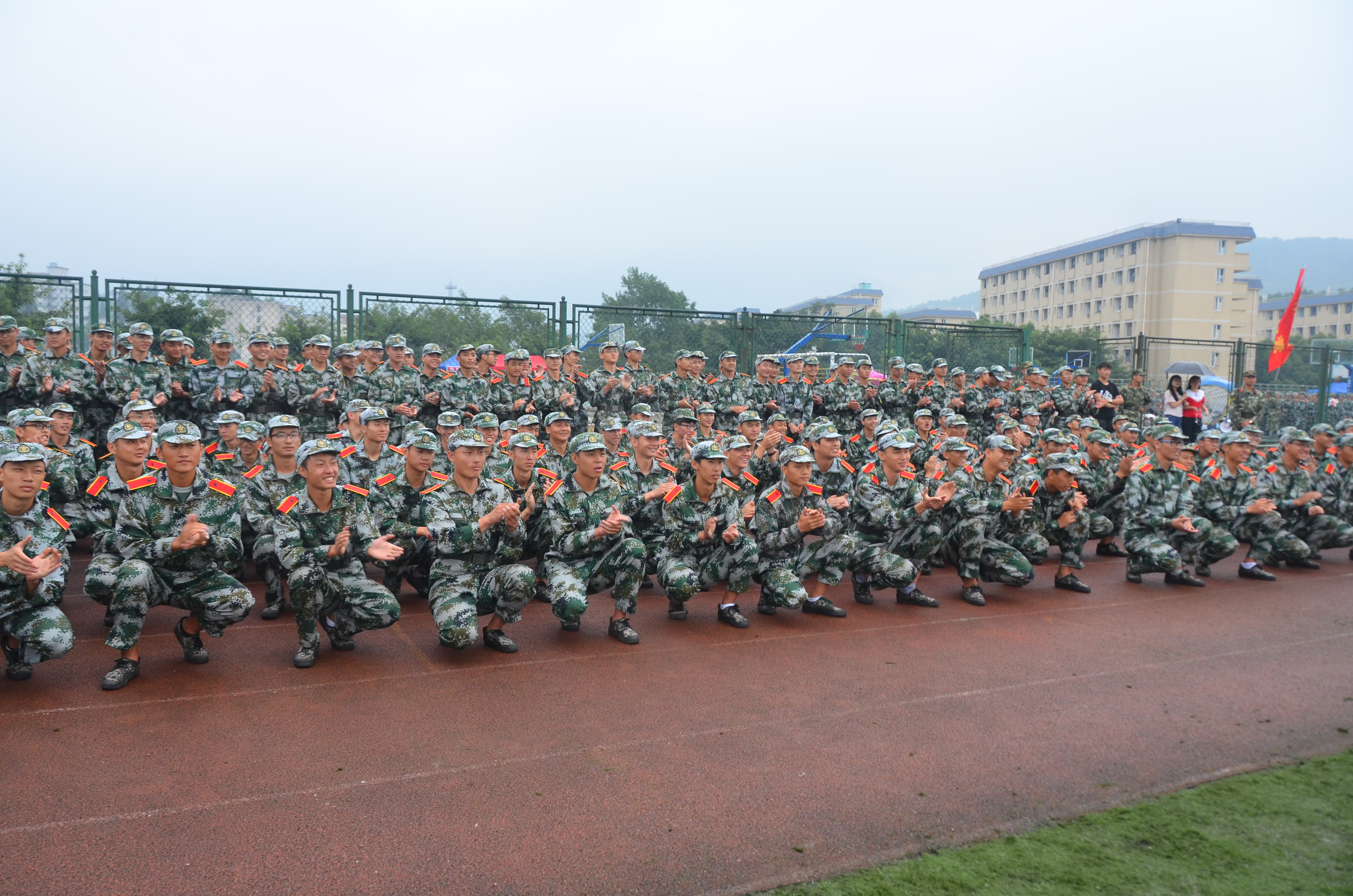 “虽然每天都在训练,但是这是第一次表演给全体新生看,所以还是有一点紧张,抓紧再练习一下,争取做到最好!”正式开始前还在数着节拍不断练习的队员们说到。休息时间,七营的同学们在教官的安排下围坐,中间形成了一个小舞台,而队员们则随着音乐的节奏,舞动着双手,自信昂扬地走上舞台。青春健美,音符与舞姿交相辉映,热情洋溢,激情与活力洒满整个操场。整齐优美的动作,灿烂的笑容赢得了在场所有人的掌声。