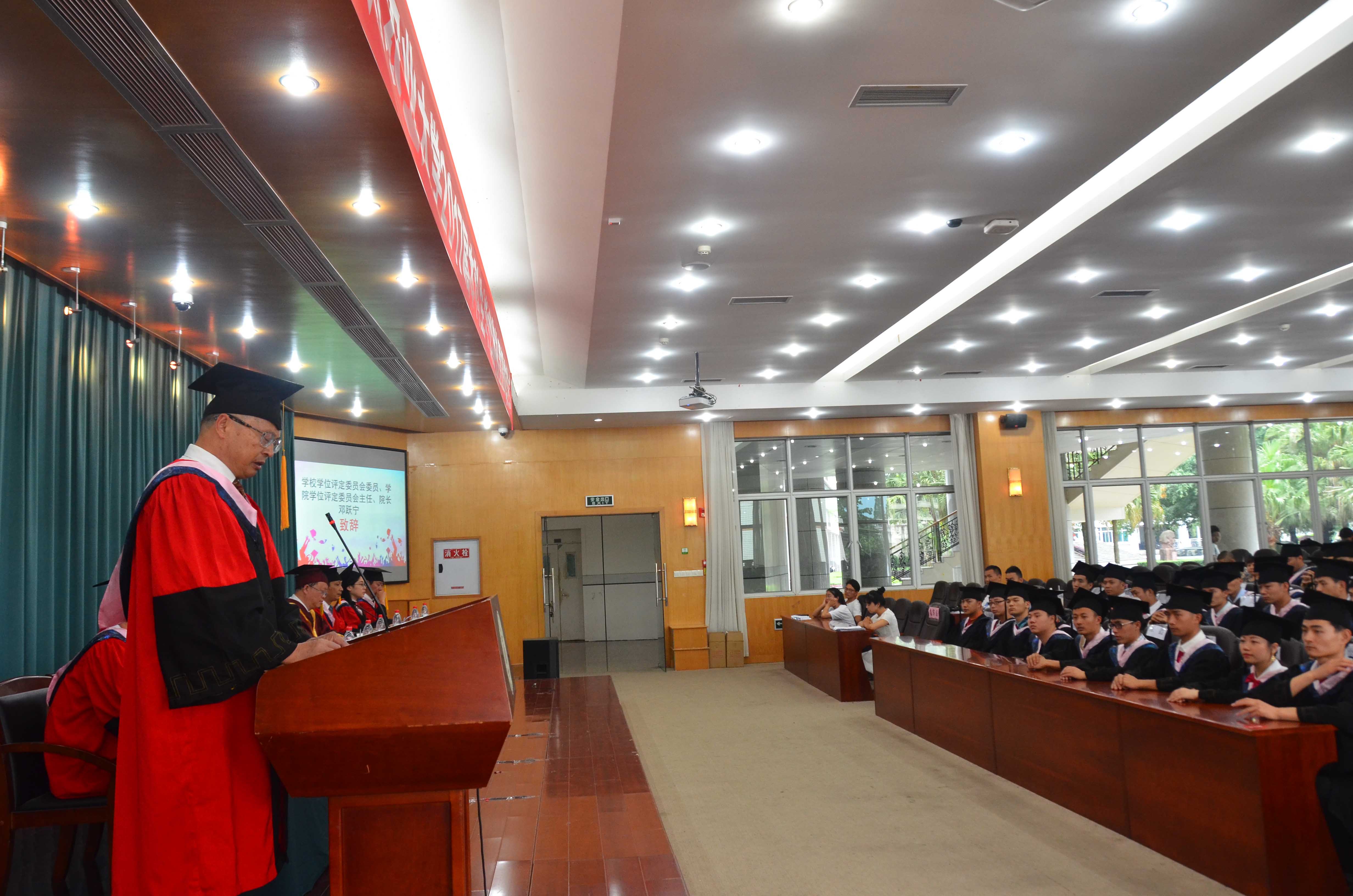 6月13日下午,万象城awc888在十教小礼堂举行了2017届本科生毕业典礼暨授位仪式。学校党委副书记张强副教授、院长邓跃宁教授、党委书记兼副院长王建强、副院长杨英教授、党委副书记蒋颖老师、体育系主任刘骞教授、公共体育部主任杨军教授、学院教代会主席刘仁健教授、以及学院各系室主任、专业负责人、各毕业班班主任等参加此次授位仪式。授位仪式由党委书记兼副院长王建强主持。