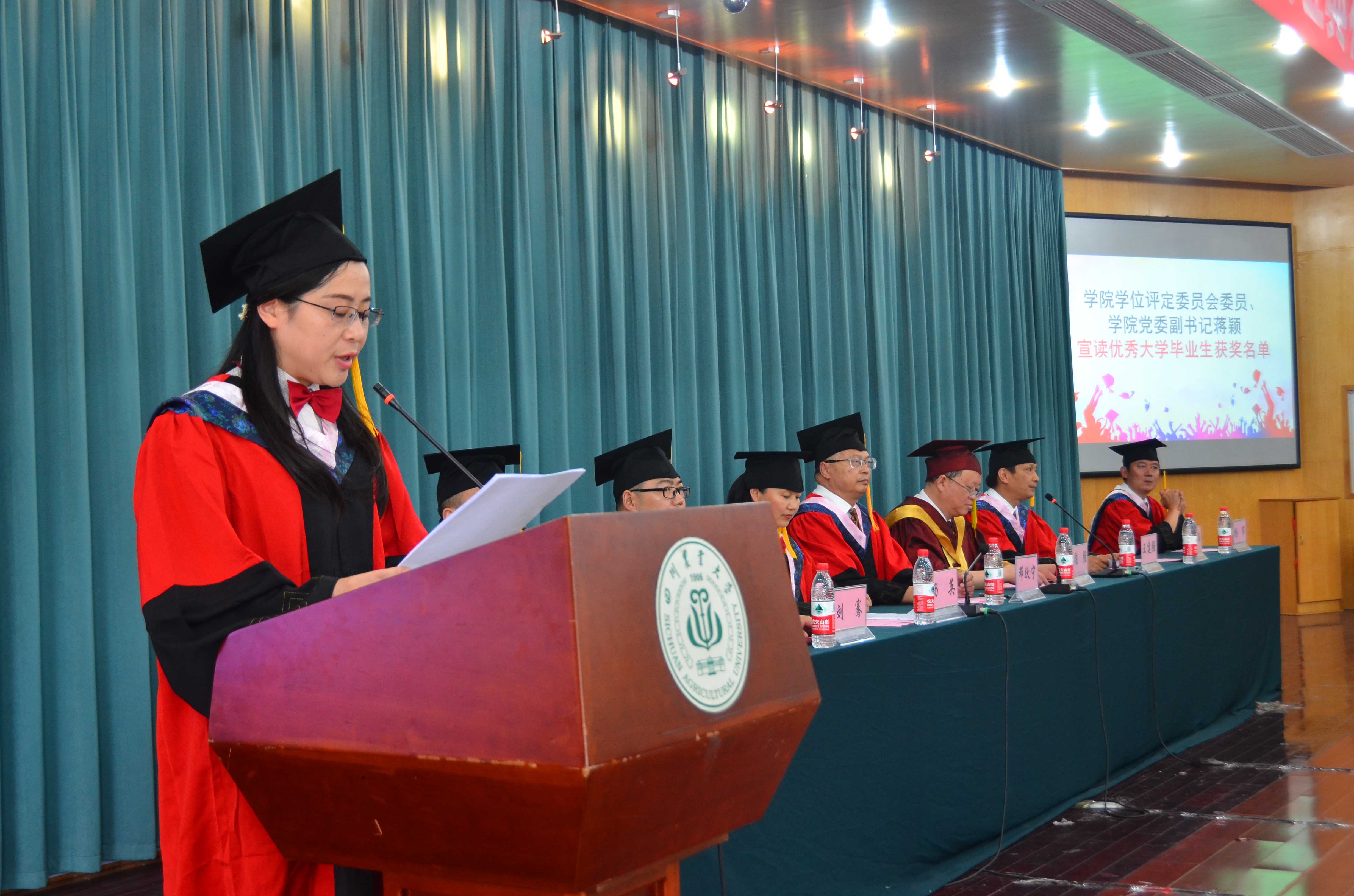 邓院长为毕业生做了激情洋溢而又语重心长的致辞。随后,学院副院长杨英宣布2017届优秀毕业论文表彰决定; 学院党委副书记蒋颖宣读关于“优秀大学毕业生”的表彰决定。教师代表余威希望毕业生们将来无论在什么样的岗位,都要坚持自己的梦想,愿毕业生一切安好,幸福快乐,前程无忧,放心大胆寻找属于自己的远方和未来!