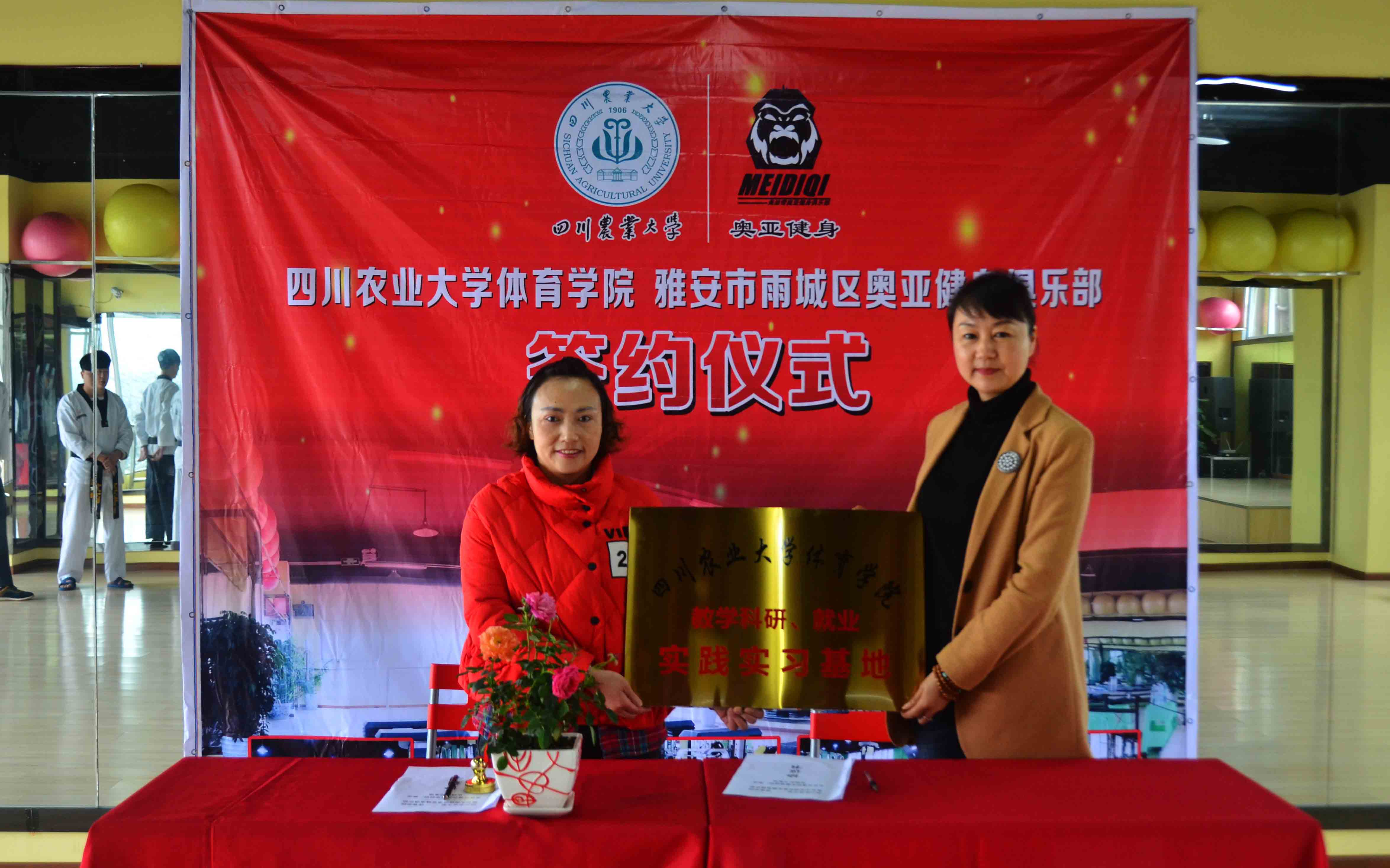 3月30日,万象城awc888副院长杨英、党委办公室主任、体育系主任刘骞、副主任牛鹏飞等一行前往雅安市氧动力健身中心、雅安市美迪奇奥亚健身俱乐部进行教学实践与就业实习基地挂牌仪式。