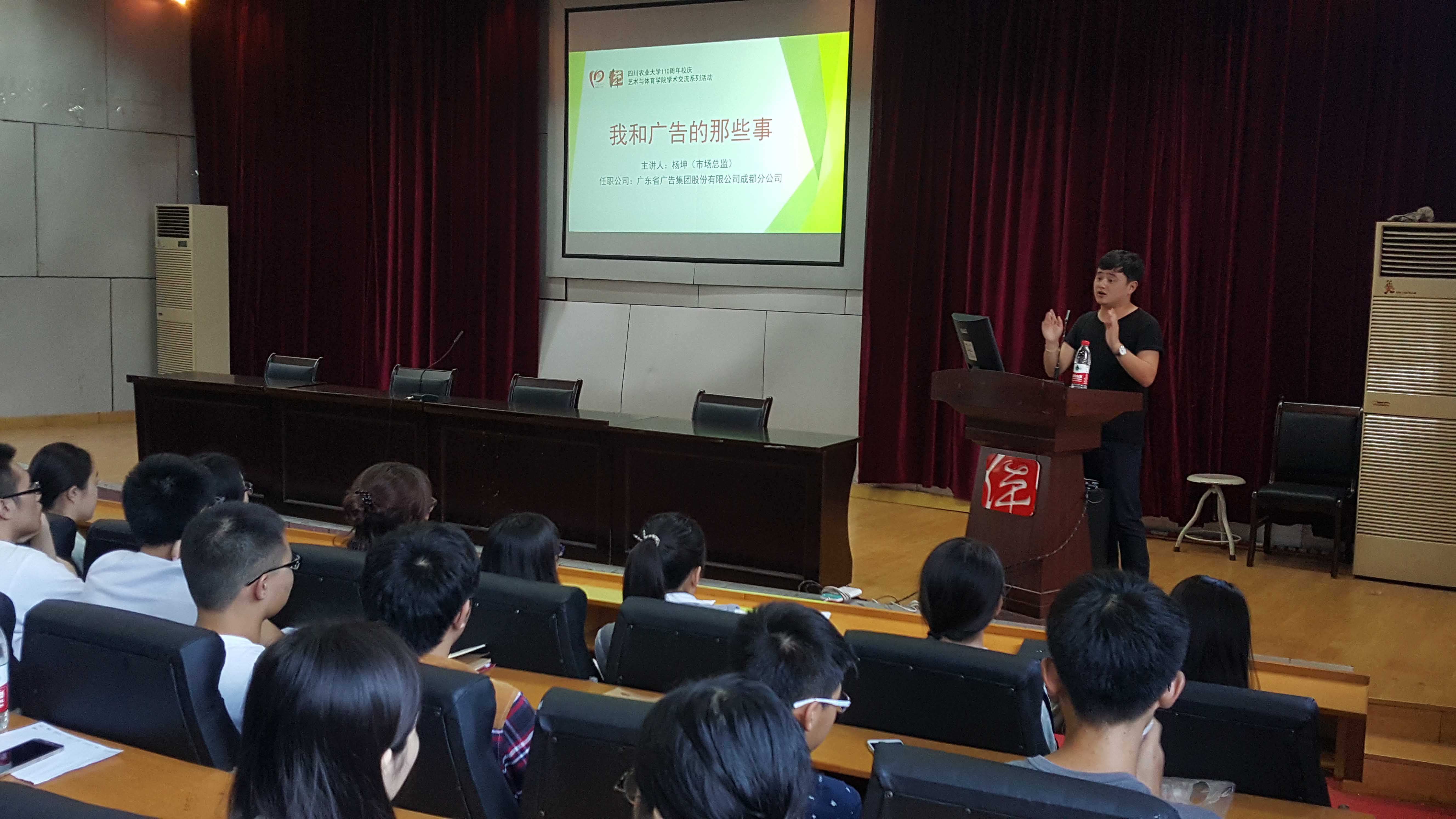 9月23日下午,广东省广告集团股份公司成都分公司市场总监,我院2009级广告学专业校友杨坤应邀回校,为2016级广告学专业新同学做了一场专业交流,献礼母校110周年华诞。